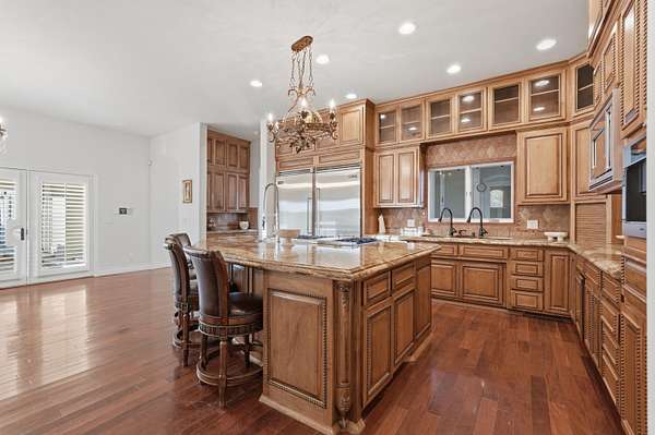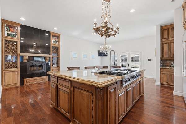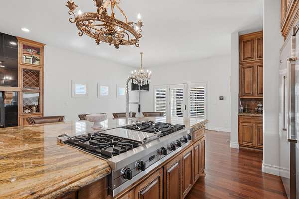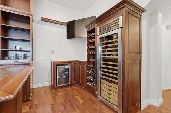 - Built In Gas Range, Cooktop, Dishwasher, Microwave, Refrigerator, Wine Cooler