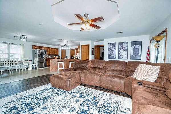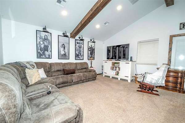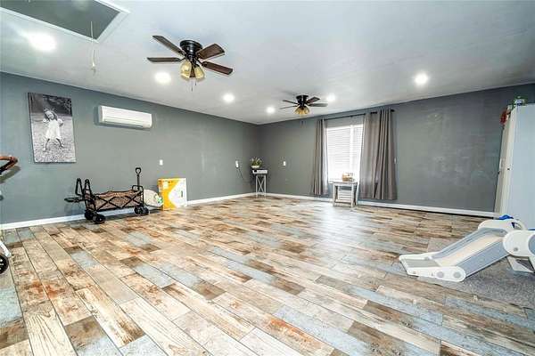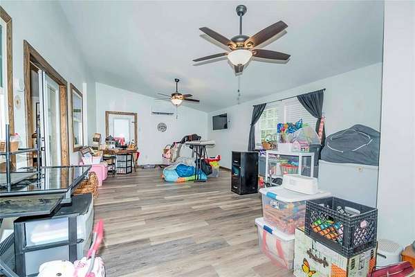 The primary residence features 2,174 square feet (MOL) with an inviting open floor plan, offering 3 bedrooms and 2 bathrooms. The spacious living area includes a fireplace, ideal for cozy evenings, while the master suite boasts double sinks, two walk-in closet, and plenty of room to relax. The garage has been enclosed with a mini-split for heat and air and could be used for 2nd living area, 4th bedroom, game room, etc. Doors were left if you preferred to turn in back into a garage.