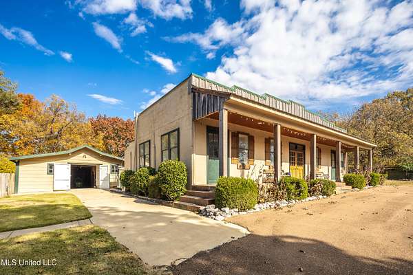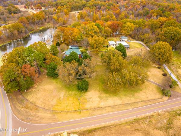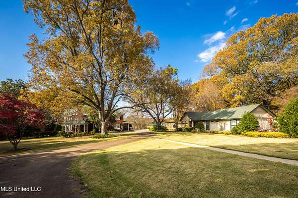 A timeless Georgian-style estate built in 1947 and lovingly known for generations as ''The Big House,'' this remarkable property rests on 6 peaceful acres in Lake Cormorant, MS, surrounded by rolling hills and serene waterfront views. Hand-built with care and intention, the home reflects enduring craftsmanship, rich history, and incredible bones. The main residence spans 5,582 square feet and offers 6 bedrooms and 3.5 bathrooms. A grand foyer sets the tone upon entry, with a formal living room to the left and a den or study to the right-each centered around its own fireplace. The living room flows seamlessly into a sunroom overlooking the lake, while the adjacent formal dining room also captures beautiful water views, creating an ideal setting for gatherings and entertaining. Between the dining room and kitchen, a spacious hall provides additional serving and entertaining space. The kitchen is both functional and inviting, featuring an island, double ovens, and a mudroom for everyday convenience. Hardwood floors extend throughout the home, adding warmth and continuity. On the main level, two bedrooms share a full bathroom, complemented by a centrally located half bath. Just off the side of the home, a charming covered patio overlooks the pond, offering a peaceful place to unwind and enjoy the surroundings. Two separate stairwells lead to the upper level, where the home truly unfolds. Here, you'll find two expansive primary suites, each with its own private sitting room with a fireplace, beautifully tiled bathrooms, and scenic outdoor views. Two additional bedrooms complete the second floor, along with double doors in the hallway that open to a quaint balcony. A large attic provides ample storage and potential for future expansion. The large basement adds even more functionality, offering generous storage space, housing a newer boiler, and featuring an impressive storm shelter or vault. Beyond the main residence, the grounds continue to impress. Behind the home sits a three-car garage with an attached greenhouse, an impressive shed affectionately known as ''the dam house,'' and a charming guest cottage. The 850-square-foot guest house includes a fireplace, one bedroom, a full bathroom, a full kitchen, and a screened-in porch-perfect for hosting guests or extended stays. Further into the property, a barn and an exceptional commissary building offer even more versatility. This impressive 2,784-square-foot structure includes a full kitchen and two full bathrooms, making it ideal for gatherings, events, or flexible use. With abundant parking and a setting that blends privacy, history, and possibility, this estate is a rare offering-graceful, storied, and truly unforgettable.