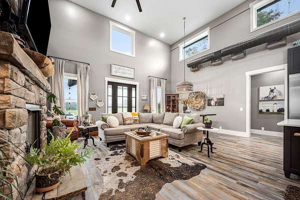 PRICING IMPROVEMENT! Unique luxury Barndominium nestled on 20 level, fully fenced acres--an exceptional blend of rustic charm and modern elegance. Boasting 4,392 sq ft of meticulously designed living space, this 4-bedroom, 4-bath masterpiece offers upscale finishes and thoughtful details throughout.