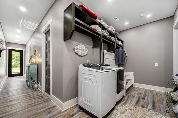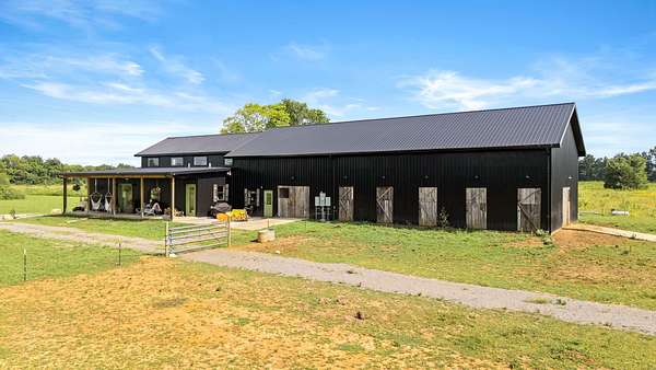 Additional features include an oversized walk-through pantry with spigot, large laundry room with built-in shelving, and an attached barn like no other--complete with 10 stalls, a wash bay, office, game room, hay loft, concrete hallway, drive-through garage doors, two 92-inch ceiling fans, and LED lighting throughout. Each stall includes interior and exterior doors, with exterior lighting above each.
