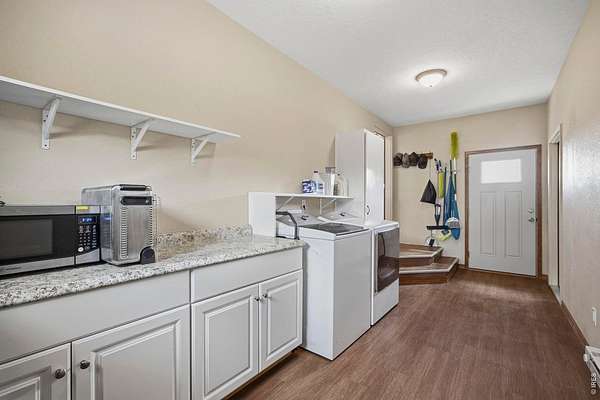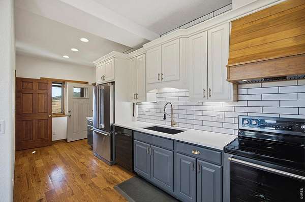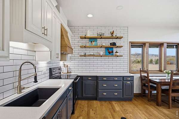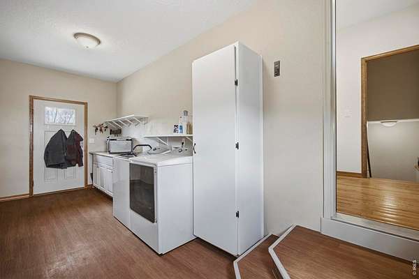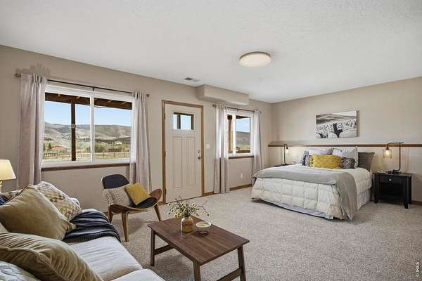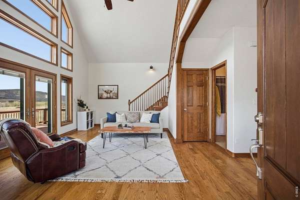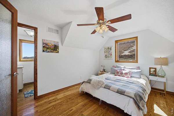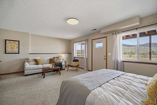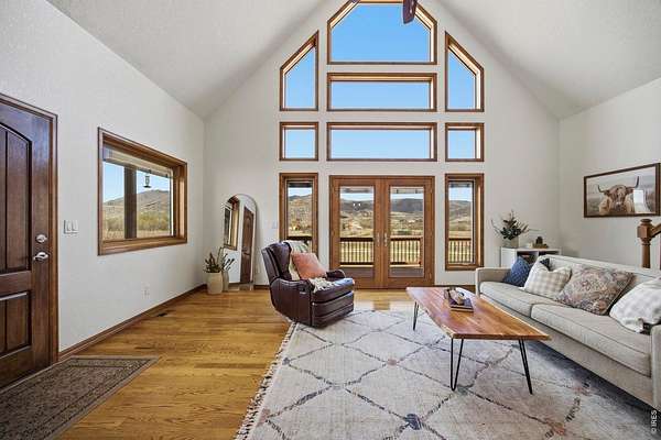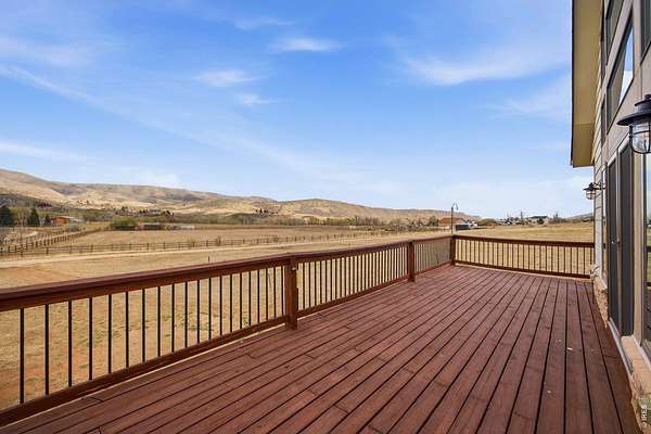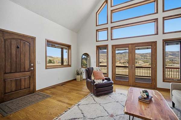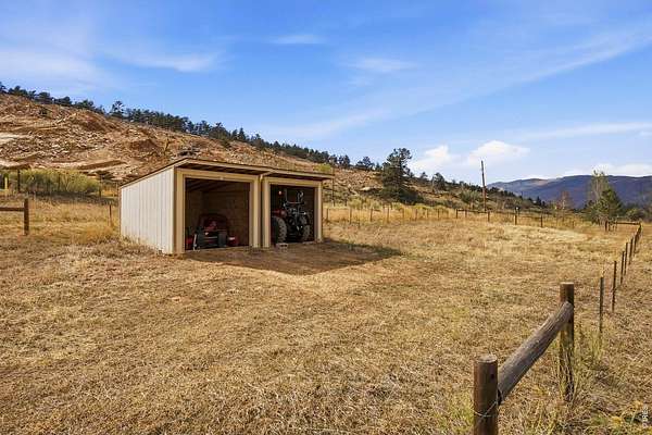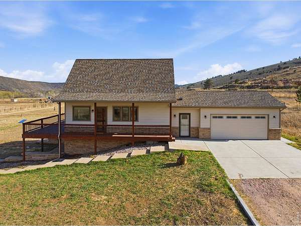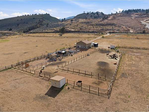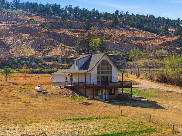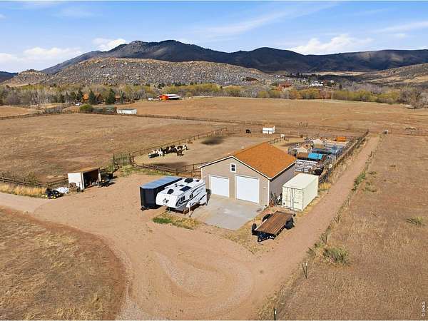 Welcome to your own slice of West Loveland, where wide-open space, mountain views, and everyday functionality come together in a way that's hard to find. Set on over 8 acres with sweeping 360-degree views of the foothills and Horsetooth Rock, this thoughtfully designed A-frame offers true Colorado acreage living with no HOA and horse-ready infrastructure already in place. The property includes pasture, loafing sheds, chicken coops with power, garden areas, a 30x30 shop with bathroom and shower, RV hookups with dump station, and additional storage with a 20-foot shipping container. Inside, you'll find hardwood floors throughout the main and upper levels, beautiful cabinetry, a spacious pantry, and a functional mudroom/laundry area. The walkout basement provides flexible living space with a 3/4 bath, perfect for guests or additional living needs. The existing guest home allows you to live comfortably now while building your dream home. Building plans to add extra square footage to the existing dwelling are included. Additional features include a 500-gallon propane tank, forced air heating in the basement, along with extensive power capabilities in the shop including 30 and 50 amp outlets. Whether you're looking for a hobby farm, multi-generational setup, workshop space, or a place to build your future dream home, this property offers a rare combination of usability, infrastructure, and opportunity in a beautiful foothills setting. Deeded ditch rights to be transferred with the property.
