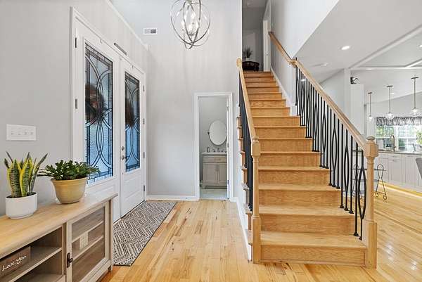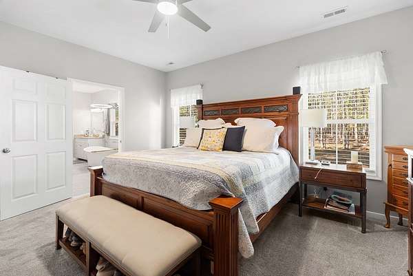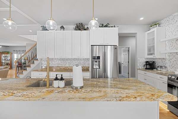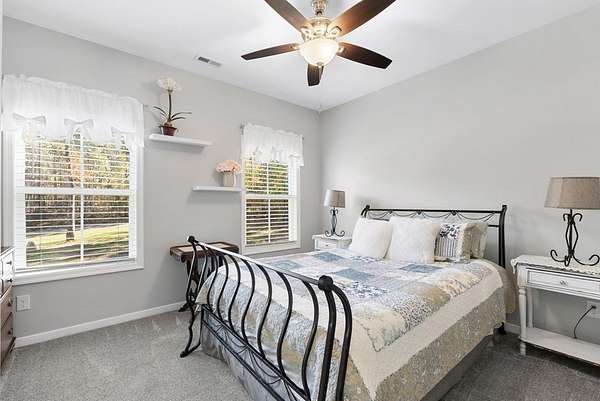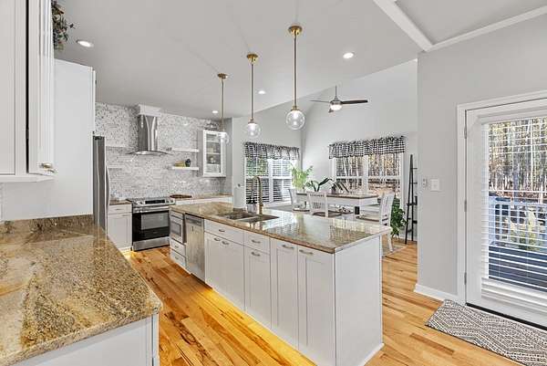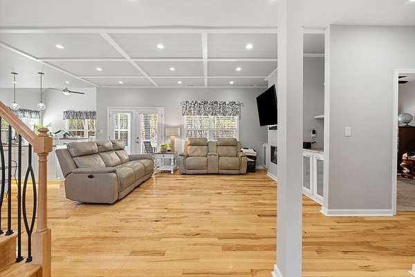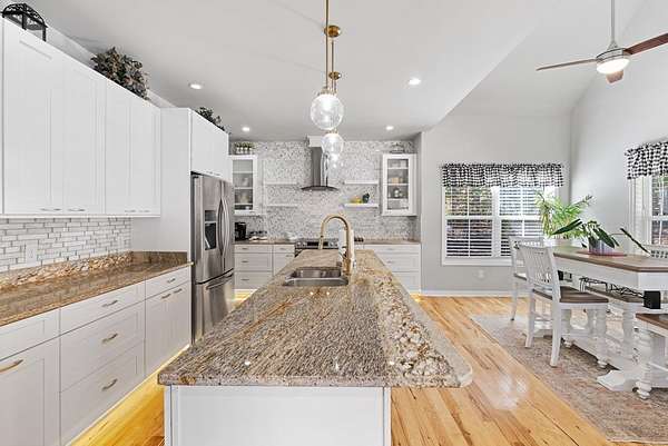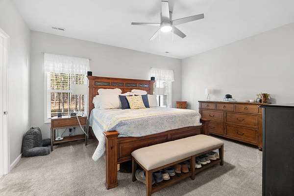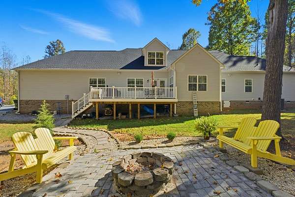 Your custom built, 4 bed, 4.5 bath home on 5+ acres awaits! All four bedrooms are on the main floor, including a huge primary suite, with a walk in closet, huge bathroom w/ a soaking tub & tile surround shower. Two of the bedrooms share a convenient Jack and Jill bath, while the fourth has a full bath right across the hall. The kitchen is a showstopper, with high-end appliances, granite countertops, tile backsplash and a huge island where everyone naturally gathers. This area flows seamlessly into the dining & living room. Here, you'll find high ceilings, hardwood floors and beautiful details that make the home feel both open and inviting. Upstairs, a large bonus/flex room, with another full bathroom is the perfect area for a 5th bedroom, guest suite, or home office. You'll also have plenty of storage space in the upstairs attic. Outside, enjoy the 24'x12' Trex back deck, totally private back yard & cozy fire pit area. Living in Pembelton Landing also means you have access to the lake, where you can fish & enjoy the outdoors. Whether you're hosting friends, relaxing by the fire pit, or simply enjoying the quiet of your own acreage, this home has it all!