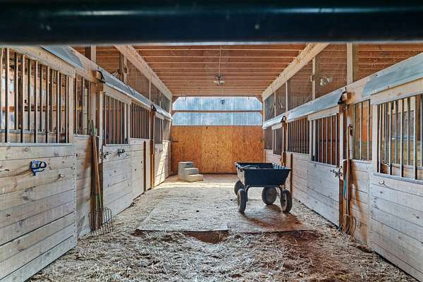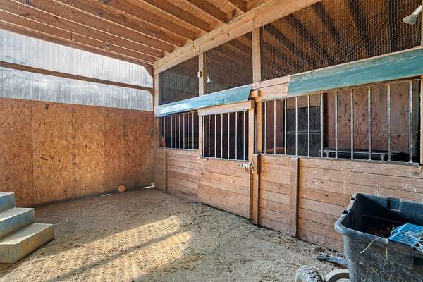 36' x 60' livestock barn with full loft and covered lean-tos on both the north and south sides