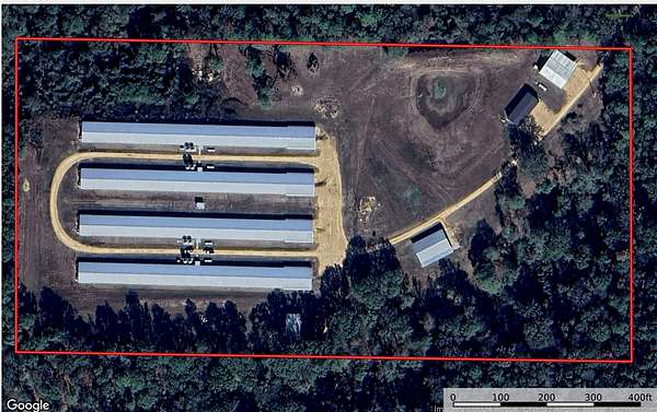 Discover the ultimate poultry farming opportunity with this exceptional 4 House Poultry Farm, perfectly situated on 20 lush acres. The farm has a long-term contract with one of nation's best poultry companies. This property boasts a 2016 3-bedroom, 2-bathroom manufactured home for comfortable living, alongside a 40' x 60' metal shop with concrete floor with a 20' x 60' drop shed, and a 40' x 70' litter barn. The sale does include tractor implements as follows: 2014 Lewis DB2 Housekeeper, bushhog, blower, a 10 ft harrow, a 2015 7 ft Litter Saver, and a 2014 Priefert wind rowing blade. The farm is meticulously maintained with advanced features: each house is equipped with 12 Acme fans (8 brand new), 3 water wells, and a 100 KW fully automatic generator. Rotem Platinum Plus controllers, new feed lines, drinkers, vent machines, and updated brooders ensure optimal conditions. The cool cell pads and roll-up doors are in great shape enhance efficiency and convenience. This well-run farm is among the best in the industry, promising a productive and profitable venture. Equipment lists and grow-out sheets are available upon request. Don't miss this chance to invest in a top-tier poultry operation!