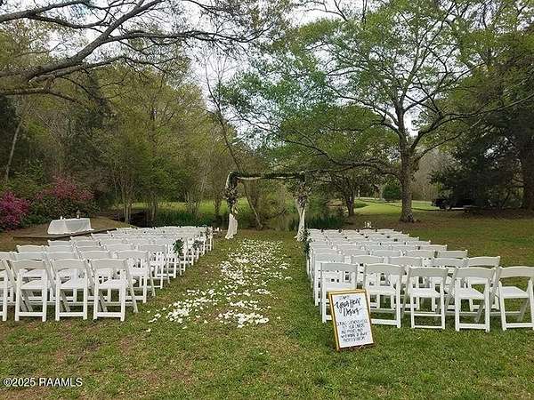 Woodlawn Chapel: Where Rustic Charm Meets Timeless EleganceImagine events unfolding in a setting of unparalleled beauty and tranquility. At Woodlawn Chapel, you'll discover a truly unique wedding and event venue steeped in history and nestled amidst the serene countryside of Maurice, Louisiana.This charming chapel offers a captivating blend of rustic allure and historical significance. Step inside and be embraced by the warmth of century-old woods, whispering tales of generations past. Sunlight streams through exquisite stained glass windows, casting a soft, ethereal glow, while antique doors and vaulted entries add a touch of grandeur to the space. Just steps away, a picturesque pond reflects the surrounding quiet wooded area, providing stunning photo opportunities and a sense of peaceful seclusion. Conveniently located within a short distance from surrounding Acadiana areas, Woodlawn Chapel offers a countryside escape without sacrificing accessibility. Beyond weddings and receptions, this versatile banquet hall is also the perfect setting for family reunions and other cherished special events.