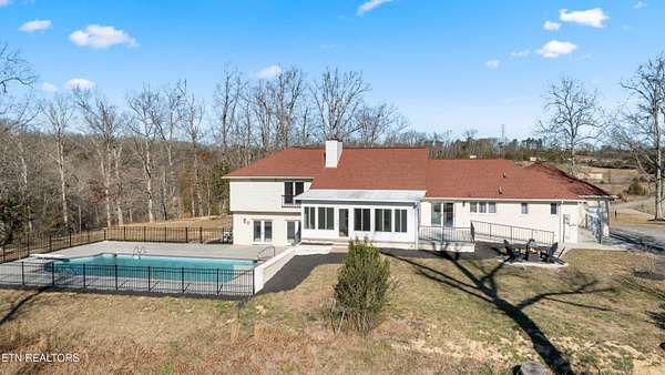 Beautifully updated Spanish style tri-level with an unfinished, heated and cooled basement. This beautiful home on 5.5 private acres (newly surveyed) New gravel driveway. There are presently 5 bedrooms in this home and many more could be added in the lower heated and cooled basement! Kitchen and bathrooms have new porcelain tile floors. All Bedrooms, Recreation room downstairs steps all have new carpet. Living room and Dining Room are spacious and den has a fireplace and opens up into the sunroom. Living room and den have hardwood floors that have been refinished! Kitchen has new cabinets, granite countertops and ss appliances. Master bedroom has its own private bathroom suite and spacious walk-in closet. Master overlooks the inground pool. New countertop, lighted mirrors, soaking tub, walk in closet. Two more bedrooms and another bath on the same level. Downstairs has a recreation room that opens out to the pool area and has a wet bar with a new sink and new mini refrigerator. There are two more bedrooms and a full bathroom on the downstairs level as well with new carpet and new light fixtures. The lower level is an unfinished basement that is heated and cooled. Inground pool has been resurfaced and a new black iron fence installed. Pool is 36 X 18 and has a deep end of 9 ft and diving board. Three car garage have all new garage doors and a newly coated concrete floor. Home has a ramp to the back door and has new concrete slip resistance coating. Septic has been pumped and inspected and in good working condition. New light fixtures, plumbing fixtures, hardware on the doors throughout. Brand new toilets as well. There is an elevator shaft built into the plans of the home. It is box by the stairs from the lower level to the main and up to the upper level. New driveway was cut for this home and graveled. Walk to the lake. See the list of Updates in the Documents file!! MLS 1326506 has 4.4 acres additional acreage that can be purchased for $149,000.
