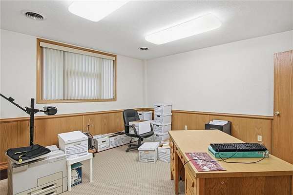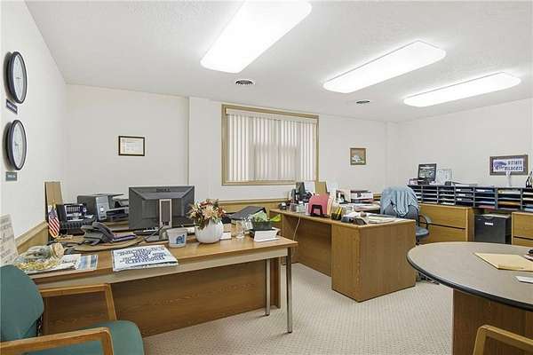 Excellent opportunity available in the industrial park of Atchison, KS. This versatile property offers significant potential for a variety of business uses. Situated on over 2 acres, the building comprises 6,390 square feet and includes a spacious lobby/reception area, three generous offices, a restroom, a large packing or workroom, and a 4,899 square foot warehouse equipped with one oversized garage door and one dock door. Constructed in 2000 with brick exterior, the facility features heating and cooling throughout. The property is zoned I2 and will be vacated by the owner by January 1, 2026.