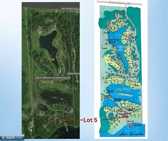 Est $1,074/moRare opportunity to own a Lake Vermilion lot and start living lake life! This 0.11 acre lot is part of the Waters of Vermilion CIC #56 located in Pike Bay on Lake Vermilion and is all set to build your home or vacation cabin. It features views of Lake Vermilion and is near the Waters Club and docks. Lot includes access to utilities including water and sewer. Ownership of a lot includes common ownership of almost 30 acres of prime land with trails, 1200' of Lake Vermilion shoreline, private docking options, access to a beautiful game room and community kitchen, 2 inland ponds which include a private beach and much more. Schedule your tour today of this gorgeous and breathtaking development. Additional lots available.