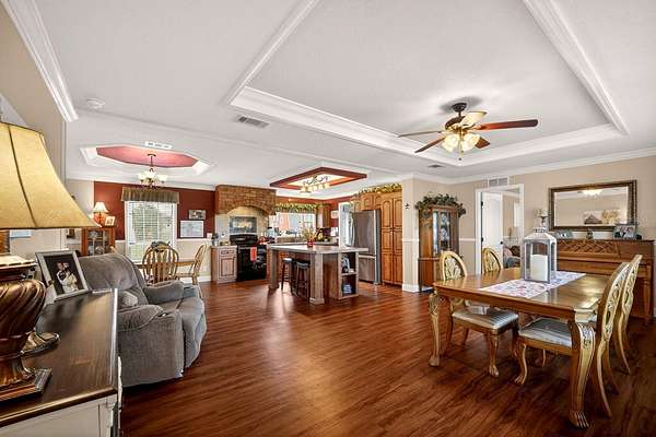 TURNKEY, MOVE-IN READY beautiful home on 2.26 acres of pure beauty! Located minutes from major highways, hospitals, golf courses, trails, lakes, boat ramps, shopping and more. This spacious and comfortable home offers 3 bedrooms plus an office with a walk-in closet that can easily be used as a 4th bedroom, 3 full baths, and over 2,000 sq ft of living space. When you enter, you are welcomed by an ELEGANT OPEN-CONCEPT FLOOR PLAN featuring a beautiful TRAY CEILING that adds architectural charm and a grand feel—perfect for entertaining. The large kitchen offers plenty of cabinets, a walk-in pantry, and a spacious island overlooking the living areas, so you can cook and still be part of the conversation. Enjoy a COZY WOOD-BURNING FIREPLACE during Florida’s cooler nights. The OVERSIZED PRIMARY SUITE provides plenty of room for all your furniture plus a sitting area. The primary bath features double vanities, a large walk-in shower, and a walk-in closet. The secondary bedrooms share a convenient Jack and Jill full bathroom, and the home also includes a third full guest bathroom for added comfort and convenience. Step outside to your private paradise featuring a large firepit over a beautiful, paved patio—perfect for gatherings under the stars—as well as an additional wood deck patio ideal for relaxing or entertaining. The property also includes a 20X15 TWO-STORY BARN ideal for a workshop, storage, hobby space, or whatever you can imagine, plus an additional shed and chicken/duck coop. With a well and filtration and purification system, saying goodbye to expensive water bills. Bring your horses, RV, boats, and all your toys! Centrally located just minutes from Lake Harris, downtown Clermont, downtown Tavares, Mission Inn Resort & Club, and JB Boondock's Bar & Grill located on Little Lake Harris. This property truly has it all. Schedule your private showing today before it’s gone!