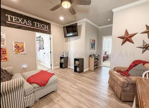 Discover the perfect blend of comfort, space, and versatility in this beautifully crafted 4-bedroom, 3.5-bath home, situated on 2.4 fully fenced acres. Step inside to soaring 10-foot ceilings accented by crown molding and recessed lighting throughout, creating a bright, open atmosphere ideal for both everyday living and entertaining. The thoughtfully designed floor plan offers two potential primary suites on the main level, providing exceptional flexibility for multigenerational living or hosting guests. Outside, the expansive acreage invites endless possibilities-for families, pets, hobbies, or future expansion. A barn/shop adds even more versatility, whether for ranching, storage, or creative projects. This property s an incredible opportunity you don't want to miss.