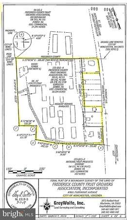 Unprecedented Development Opportunity, City of Winchester, 10.34 acres plus 3 SFH fronting Fairmont Ave (additional 1.09 acres). Gateway to downtown Old Town Winchester. Prime location for high density multifamily and mixed use commercial. Public utilities to site. Truly a catalyst development opportunity, located in the fast growing metropolitan area in Virginia. Voted #1 Main Street and Places to Retire. Also available, 27.20 acre parcel in County, immediately adjacent, also planned for high density development. MLS# VAWI2007698 Summary: OFFERING #1: CITY PARCELS (4) ZONING: Neighborhood Design District, 50 UNITS PER ACRE 801 Fairmont - 10.34 ACRES with 1400 SF office, multiple outbuildings 871 Fairmont - .17 acres with 1x 3/1 SFH 867 Fairmont - .50 acres 720 SF office 893 Fairmont - .42 acres with 1x 4/1 SFH and 2 small tenant cottages $4,500,000.00 TOTAL OFFERING #2: COUNTY PARCEL (1) ZONING: Urban Development, 20 UNITS PER ACRE 27.2 ACRES $4,000,000.00 TOTAL
