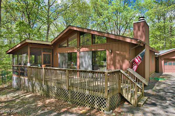 Charming Ranch on 2+ acres in Amenity-Filled Community of Hemlock Farms. Welcome to this charming 3-bedroom, 2-bath open concept ranch nestled on more than 2 acres of private, wooded land. Located in a sought-after, amenity-filled community, this home offers both comfort and convenience in a serene setting. Step inside to find a warm and inviting living space featuring a cozy wood-burning fireplace--perfect for chilly evenings. The modest kitchen and open dining area are ideal for everyday living and entertaining. Enjoy the best of all seasons with a bright 3-season room, a screened porch, and an open deck--providing seamless indoor-outdoor living and tranquil views of your expansive property. Additional highlights include: One car garage, single-level living for ease and accessibility. Two full bathrooms, including a primary ensuite. Plenty of outdoor space for gardening, recreation, or just soaking in the peace and quiet and low taxes. Whether you're looking for a full-time residence or a weekend retreat, this property has it all--privacy, charm, and access to community amenities like lakes, pools, tennis courts, state of the art gym and more. Don't miss this unique opportunity to own your own slice of nature located in a quiet cul de sac, Wallenpaupack School District.