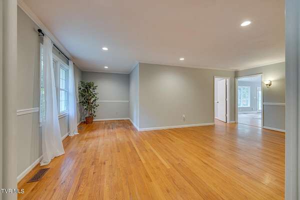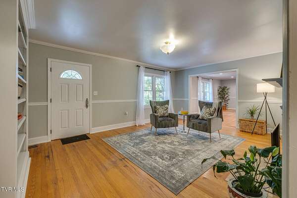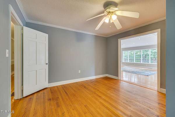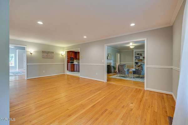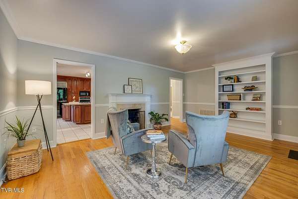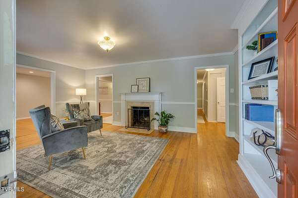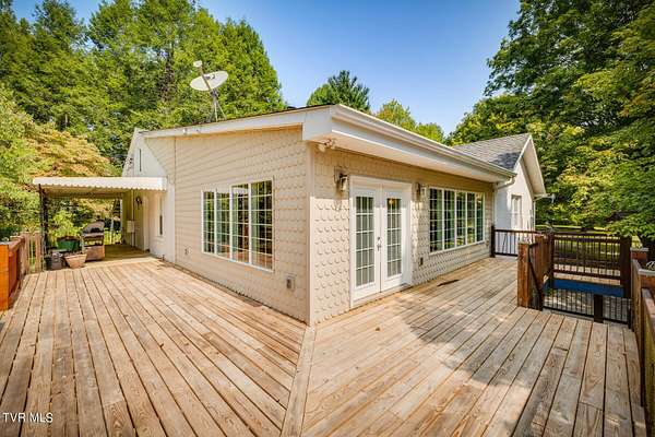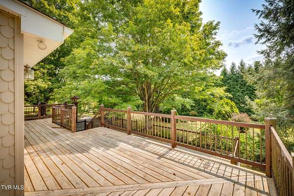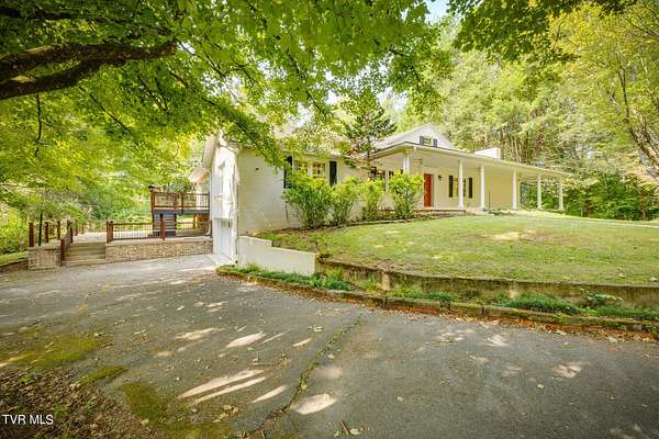 Welcome to 801 Ridgecrest Road, an idyllic, one-level, 4 bedroom, 2.5 bath retreat nestled in Johnson City, recently named the #1 best place to live by USA Today, with its great healthcare and schools. Located just minutes from ETSU, James Quillen Medical Center, hiking trails in the Blue Ridge Mountains, Pine Oaks Golf Course, and with convenient access to I-26, this home is less than an hour from Asheville, NC, and two hours from Pigeon Forge and Gatlinburg. The true value of this property lies in its nearly 5 acres of entirely landscaped, level grounds, featuring Japanese Maples, Evergreens, English Ivy, hedges, and a variety of foliage. The landscaping creates a private, park-like atmosphere, completely shielding the home from the road. A barn, greenhouse, and koi pond offer space for gardening and peaceful relaxation. Perfect for hosting, the property provides ample parking, with a driveway and two-car garage that leads into the full basement. Over the years, this home has been the setting for weddings, reunions, graduations, and celebrations. Inside, the spacious layout spans over 5,000 square feet of hardwood floors, and opens into a cozy front room with built-in bookshelf and gas fireplace, a formal dining room, and a bonus room that can serve as a fifth bedroom or be remodeled into a larger space. The kitchen features granite countertops, hardwood cabinets, and an island, with views into the great room. Vaulted ceilings and large windows flood the space with natural light, and the wrap-around deck and patio are perfect for outdoor entertaining. Pocket doors lead to a private office or bedroom with a jack-and-jill half bathroom. The master suite offers a luxurious soaker tub, vintage built-ins, and a gas fireplace. There truly is no other property as magical as this one. You have to see it for yourself to believe it. Schedule your showing today! Buyer/buyers' agent to verify all info contained herein. All info deemed reliable but not guara