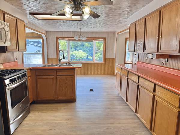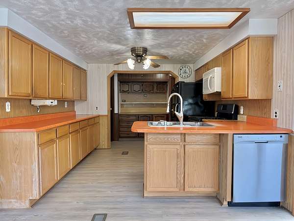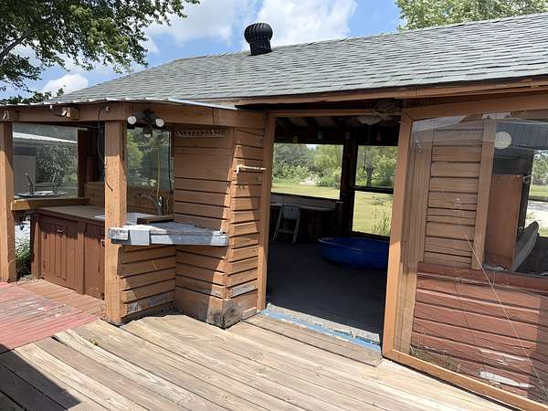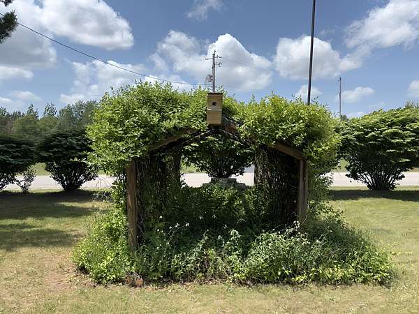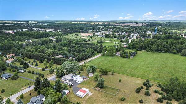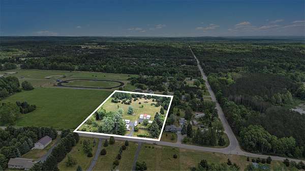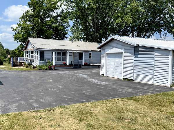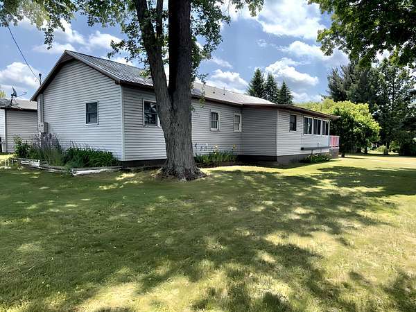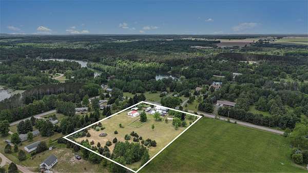 Five percent down financing available. Looking for peace, privacy, and room to breathe? This 3-bedroom, 2-bath home sits on 4.5 acres and offers thoughtful details that make everyday life easier and more enjoyable. The home features a solid metal roof, paved driveway, and multiple outbuildings including a heated garage workshop, a cozy finished shed, and RV or boat storage with drive-through access. Enjoy mornings on the three-season porch, cook in the outdoor kitchen, and unwind beneath the producing grape arbor. A dedicated 5th-wheel parking slab with hookups and a whole-house Generac generator add comfort and reliability. This property is ideal for those seeking space to live, work, and relax. Cash or portfolio loan required due to year built.