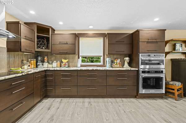 - Builtin Oven, Convection Oven, Dishwasher, Disposal, Double Oven, Induction Cooktop, Instant Hot Water, Island, Microwave, Plumbed For Ice Maker, Range Hood, Stainless Steel Appliance, Wine Cooler