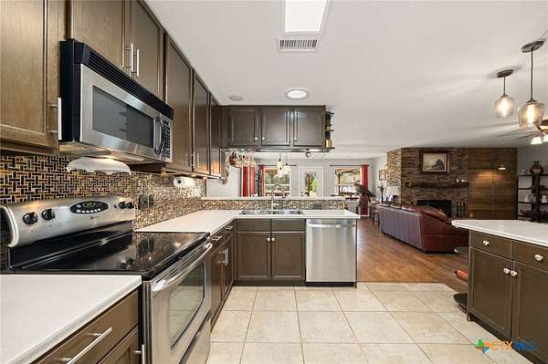 Experience the best of country living in this charming single-story ranch-style home set on nearly 5 acres, where space, comfort, and convenience come together beautifully. Horses are welcome, and the property includes multiple outbuildings, including a spacious workshop and a chicken coop-perfect for hobby farming or extra storage. Half of the acreage is cleared for easy use, while the other half remains heavily wooded, offering both open space and natural privacy. There are also fruit trees providing delightful treats! Inside, the home features an inviting open floor plan centered around a striking stone fireplace, creating a warm and welcoming atmosphere. The kitchen is ideal for gathering, with Corian countertops, a breakfast bar, and plenty of cabinet space. The primary suite is a true retreat with dual walk-in closets, while two additional bedrooms provide comfort and flexibility for family or guests. Step outside to enjoy a peaceful backyard surrounded by mature trees-ideal for relaxing evenings or weekend barbecues. Located in a desirable area that combines the tranquility of rural living with quick access to local amenities, this property offers the perfect balance of country charm and modern convenience.