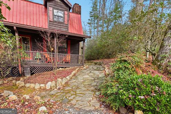 STORYBOOK COTTAGE TUCKED AWAY ON NEARLY 3 ACRES IN THE HEART OF NORTHEAST GEORGIA... Your quintessential mountain retreat perfect for full-time residence or a charming second home! A darling stone walkway welcomes you to the rocking-chair front porch overlooking a private, wooded lot with mature trees and thoughtful landscaping. Step inside to the COZY Living Room with exposed beam ceilings and an abundance of natural light, anchored by a beautiful stone wood-burning stove, ready to keep you warm on the crisp winter nights ahead. The inviting Family Room carries the home's warm ambiance, offering plenty of space for gatherings or quiet relaxation. Functional Kitchen design features an eat-in Dining area along with additional seating at the island bar, perfect for casual meals, hosting friends and family, or morning coffee. Easy exterior access makes grilling out and outdoor entertaining effortless with enjoying the peaceful sights and sounds of the nature-filled acreage. Upstairs features the tranquil Primary Bedroom with private ensuite and balcony to enjoy provides a restful escape. Secondary Guest Bedroom ensures space for friends or family. LARGE Landing area completes the upper level, ideal for an additional living space to watch a movie or football game, a playroom, or office overlooking the surrounding trees. Dedicated workshop located off the lower deck and outbuilding making ample space for hobbies/projects or simply storing tools, yard equipment, and outdoor gear. Conveniently located near the best of Northeast Georgia: hiking trails, waterfalls, boating and fishing on Lake Burton and surrounding lakes, and charming mountain towns, bringing endless adventure right to your doorstep. Call our team for your private viewing today!