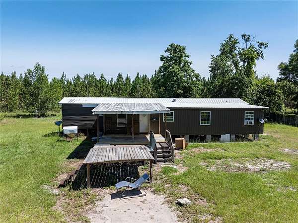 USDA Zero down Financing Eligible! This four-bedroom, two-bathroom spacious open plan single-wide manufactured home sits on a large 8-acre lot with no HOA or CDD, offering plenty of room and privacy. Located on a quiet, no through traffic area. The home provides a peaceful setting while still being conveniently close to shopping, schools, restaurants, and medical facilities. The property is in good overall condition and ready for your personal touch to make it truly yours. Metal roof and laminate flooring throughout. The interior features an inside laundry area, and the exterior boasts a deck and shed for extra storage. Newly painted both interior and exterior. Perfect for farming, raising animals, or simply enjoying the wide-open space. Whether you're investing in agricultural land, or just enjoying a quiet rural lifestyle with convenient access to town, this property is for you! Sold AS-IS.