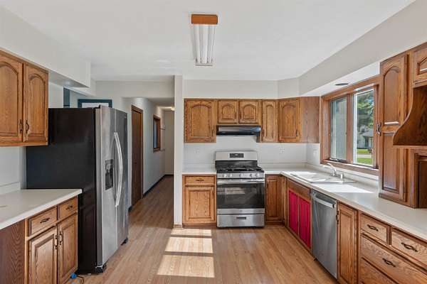 Spacious 5 bed, 3.5 bath ranch home on 5.27 acres in the City of Nekoosa! Over 2,500 sq. ft. of elbow room--no more bumping into each other in the kitchen. Main level features a large master suite with walk-in shower, main floor laundry (because stairs and laundry don't mix), and a cozy wood fireplace. Downstairs, you'll find a rec room, exercise room with equipment, and two bedrooms with egress windows--perfect for guests, teens, or that one relative who "just needs a place for a little while." Huge deck, large garage, outdoor playset, and room to roam--all within city limits!