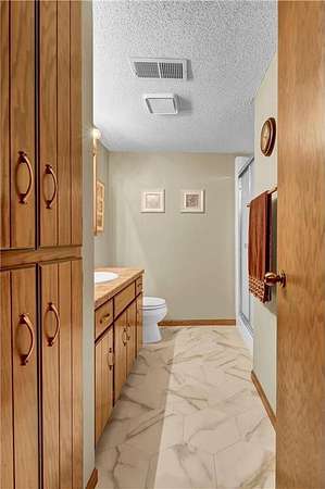 The finished lower level includes a generous rec room, an exercise room, large bedrooms and plenty of storage space. An attached garage adds everyday convenience and the fully finished breezeway is relaxing space to enter this beautiful home.
