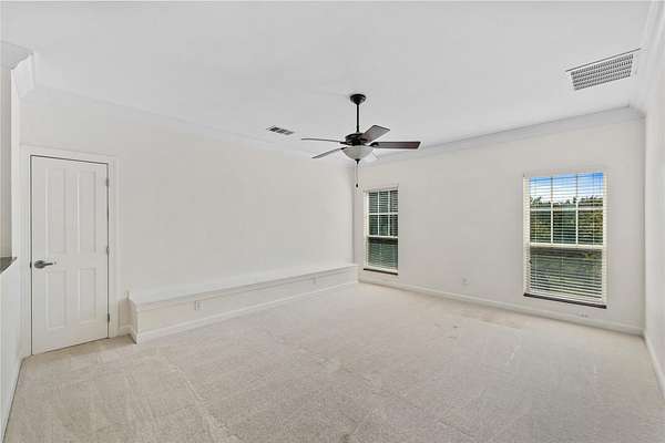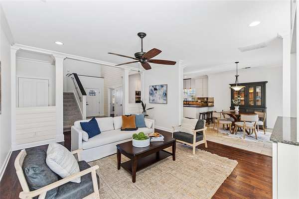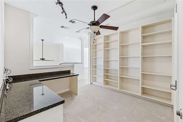 - Ceiling Fan(s), Eat-In Kitchen, Kitchen Island, Multiple Living Areas, Primary Bedroom On Main