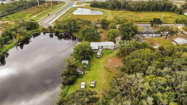 The property includes a charming three-bedroom, two-bath home, complete with lakefront patio and two-car garage with a spacious workshop above. This allows for financing options, making it accessible for investors looking to hold and benefit from future growth.