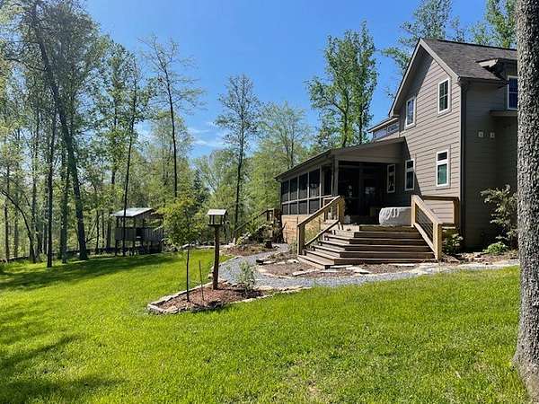 Master and a guest bedroom on the main level and 2 bedrooms up with a shared bath & common space. Large windows & a clerestory in the main living room & dining room, letting in light & the natural surroundings. White oak hardwood floors. Large front porch& screened porch off back with 2 side decks for grilling or hot tub.