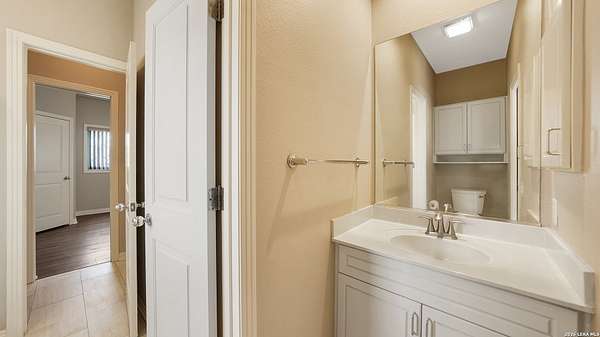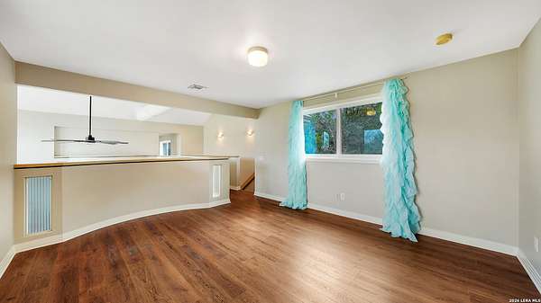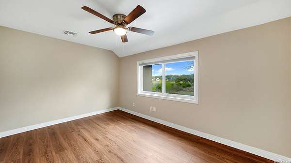 Wonderful family home on a 3.4 acre lot in Fair Oaks Ranch. This place has it all with 4 bedrooms, 3 full baths, 3 half baths, plus guest quarters above the 3 car garage. Beautiful luxury vinyl floors, neutral colors, and walls of natural light enhance the home's contemporary feel. The primary suite is downstairs with a sizable attached study complete with one wall of shelving and cabinetry. The formal living/dining room combination is spacious and has a awesome view of the yard. The kitchen has been updated with new solid countertops and appliances. Upstairs features one bedroom with an ensuite bathroom, and 2 other large bedrooms connected by a Jack and Jill bath arrangement. Also upstairs are a sizable loft plus a bonus room that can be used as a children's study, playroom, or exercise studio. Outdoors is a large detached 3 car garage plus a golf cart garage. Behind the golf cart garage is an air conditioned work room, currently set up as a dog grooming area. The upstairs guest quarters would be quite comfortable for long term visitors or family. Adjacent to the garage area, there is a one-stall horse barn complete with a tack and feed room and an attached chicken coop. Metal horse fencing is also included. Solar panels provide monthly savings for utility bills. This property, during wetter times, has a nice pond to further add to the beauty of the acreage. Property is completely perimeter fenced with net wire fencing and steel posts. The home is adjacent to the neighborhood park with a walking path, across the street from Trail #4 for horseback riding, and also a short drive from Fair Oaks Country Club and the two golf courses. Excellent Boerne ISD schools. Easy access to I-10, Loop 1604, the San Antonio Medical complex, major shopping areas, and other nearby amenities.