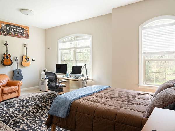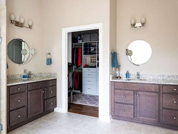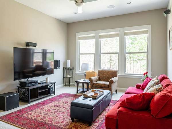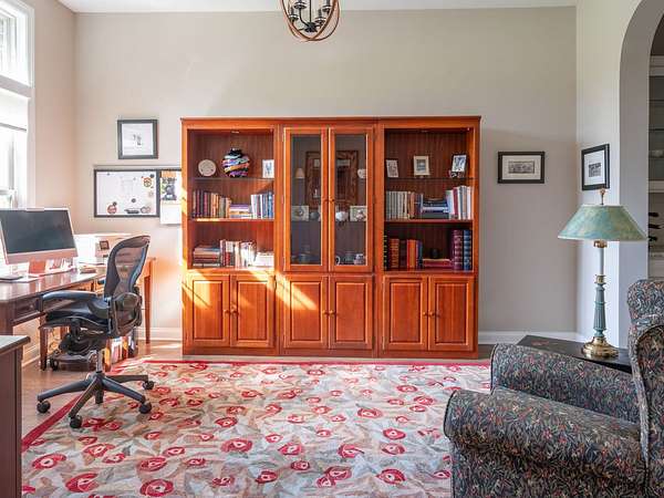 The primary suite offers a spacious retreat with a spa-like bath featuring a large curb-less shower, dual vanities, and a custom built-in closet system. A dedicated office with high-speed fiber internet provides the perfect work-from-home setup. The oversized third bedroom offers versatility for guests or a combined office/bedroom layout, while the game/media room adds additional space to relax and unwind.
