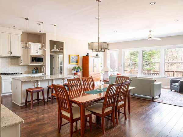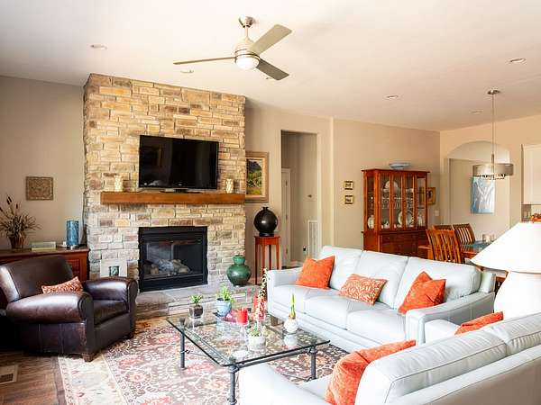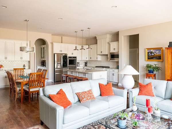 Inside, a thoughtfully designed open floor plan centers around a warm, inviting great room with fireplace, seamlessly connecting to the kitchen and dining areas—ideal for both everyday living and entertaining. High-end finishes and fixtures throughout bring a sense of understated elegance.