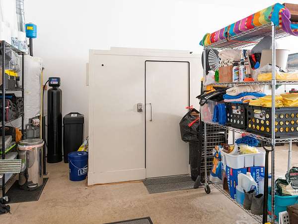 The three-car garage provides ample storage and includes a built-in storm shelter, with full attic storage above. A Generac whole-home generator is already in place for added peace of mind.