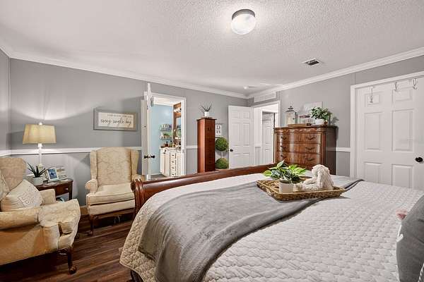 - Ceiling Fans(s), Crown Molding, Open Floorplan, Primary Bedroom Main Floor, Thermostat, Walk-In Closet(s), Window Treatments