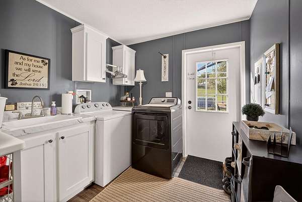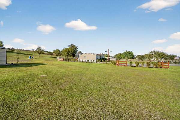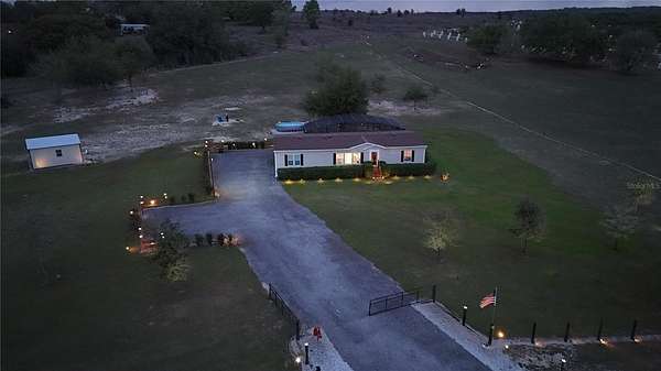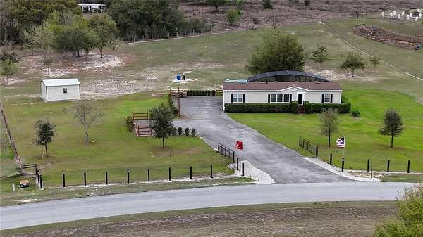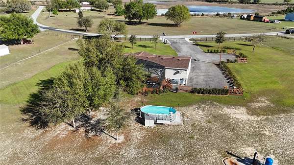Discover peaceful country living with modern convenience on 3.05 acres of tranquility! Built in 2020, this 1,980 sq ft double-wide manufactured home offers 3 bedrooms and 2 bathrooms with thoughtful upgrades throughout. A BRAND-NEW ROOF (2025) adds peace of mind, while a BLUETOOTH DIGITAL THERMOSTAT enhances comfort and efficiency. When you enter the home, you’ll be impressed by the attention to detail and spacious open layout. The large kitchen features a GENEROUS ISLAND WITH SITTING AREA FOR 6 PEOPLE, abundant cabinetry, and plenty of space for cooking and gathering. ELEGANT VINYL PLANK FLOORING FLOWS THROUGHOUT THE HOME WITH NO CARPET, creating a modern and low-maintenance living space. The primary suite offers a spacious bedroom and a beautiful bath with dual vanities, a relaxing garden tub, and a walk-in shower. The home also features two additional large bedrooms and a second full bathroom, providing plenty of space for family, guests, or a home office. Outdoor living truly shines with a 50X20 SCREENED DECK—perfect for relaxing while enjoying wildlife, sunsets, and peaceful lake views with lake access. Cool off in the above-ground pool and enjoy the RECENTLY INSTALLED WINTER RYE GRASS, the envy of the community. This is one of only two homes in the neighborhood with a FULL IRRIGATION SYSTEM. Designed for versatility, the property includes an ELECTRIC CAR CHARGER AND RV HOOKUPS WITH 30- AND 50-AMP SERVICE. AN ADDITIONAL RV SETUP WITH POWER, WATER, AND A WASTE DUMP STATION offers excellent potential for guest quarters or income opportunities. The 18X20 POWERED WORKSHOP with a concrete floor can also be used as a garage. The property is FULLY FENCED AND FEATURES A LONG DRIVEWAY WITH OFFSET PARKING FOR ADDED CONVENIENCE. Ideally located just minutes from Lake Harris, Downtown Clermont, Downtown Tavares, Mission Inn Resort with championship golf courses and restaurants, and JB Boondock’s Bar & Grill. This unique property offers space, flexibility, and an unbeatable lifestyle opportunity. Schedule your private showing today!