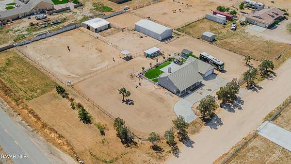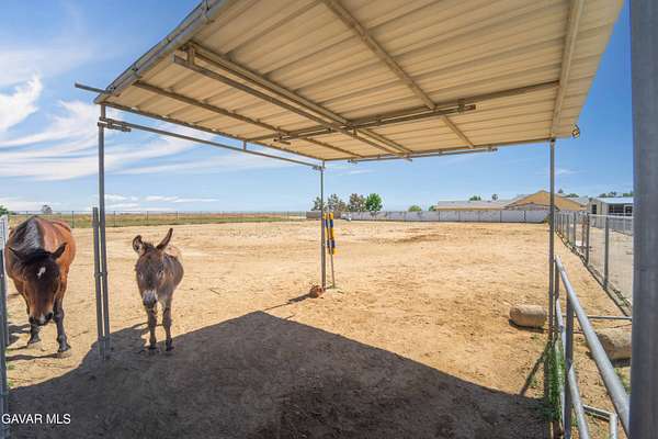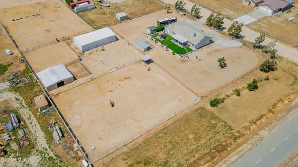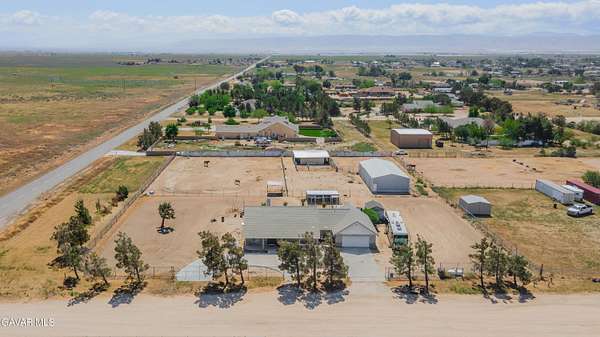 Horse enthusiast's dream in Antelope Acres! Charming 3BD/2BA home on approx. 2.13 acres, ideally located just off paved 80th St W with convenient access to local amenities and a short drive to Quartz Hill and Lancaster.This property is well-equipped for animals, featuring a 6-stall breezeway barn (Billet Barn & Corral) with six 12x12 stalls, stud wire panels, and multiple corral configurations, including attached 12x24 and 24x24 spaces. The 12-ft wide breezeway with dual sliding doors allows for year-round use. Original barn built in 2019 with expansion completed in 2023.Additional improvements include a 4-run dog kennel (approx. 6x12 each) on concrete with covered shade, a fully fenced and cross-fenced lot with two front gates (one automatic), and multiple yard areas for flexible use.The 30x60 shop offers concrete flooring, plywood-finished walls, dual large doors, side access, and 220V power--ideal for storage, workshop, or hobby space.Enjoy a private backyard with white picket fencing, turf, covered patio, pergola, raised garden beds, mature landscaping, and an insulated shed with electricity.Interior features tile and wood-look flooring throughout main living areas, carpet in bedrooms, and French doors adding character and functionality.