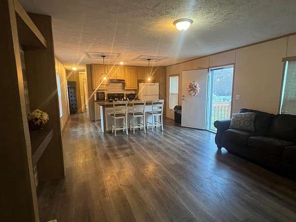 Move-in ready 2021 single-wide home offering 3 bedrooms, 2 full baths, and an open, functional layout. Inside, you'll find a bright living area that flows into a modern kitchen with an oversized island. The primary suite includes a full bath and walk-in closet. Two additional bedrooms give you room for family, guests, or a home office. A paved driveway leads you to a generously sized yard with a fenced area perfect for pets. The remainder of the property is wooded hillside, perfect for hunting or simply providing privacy. Per FEMA Flood Map home is NOT IN FLOOD ZONE!!! MLS#126838