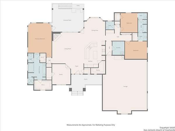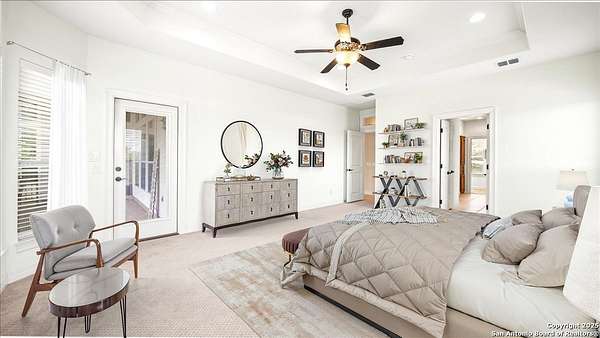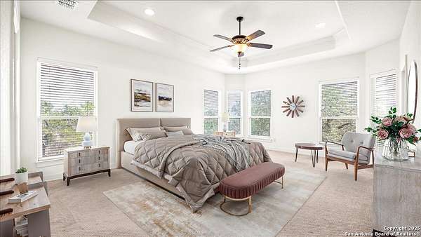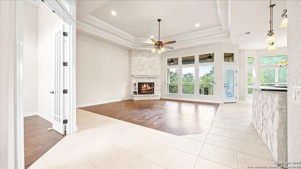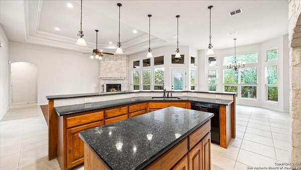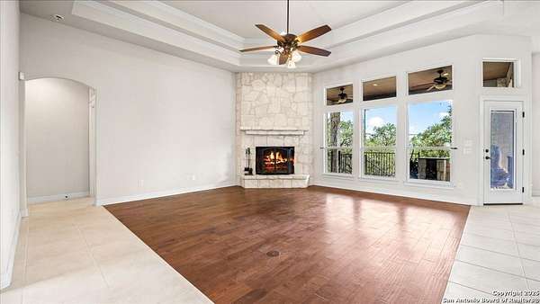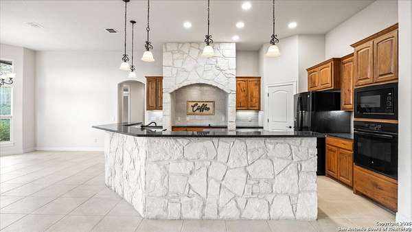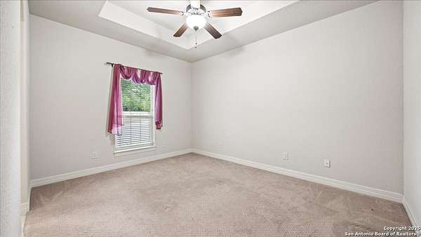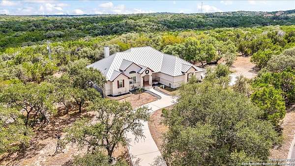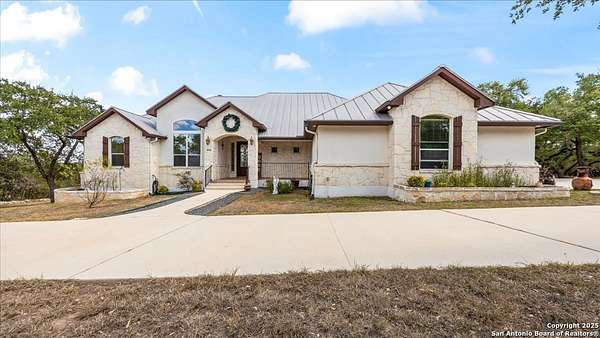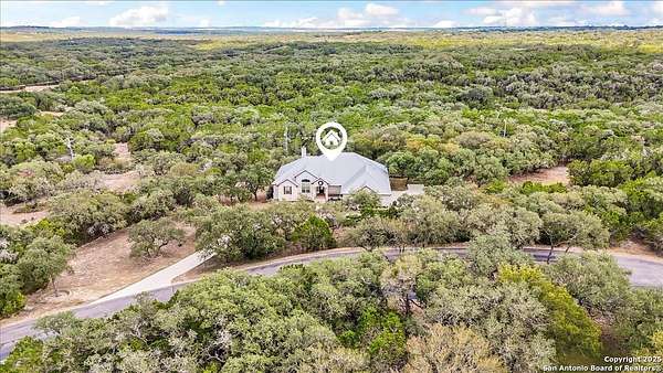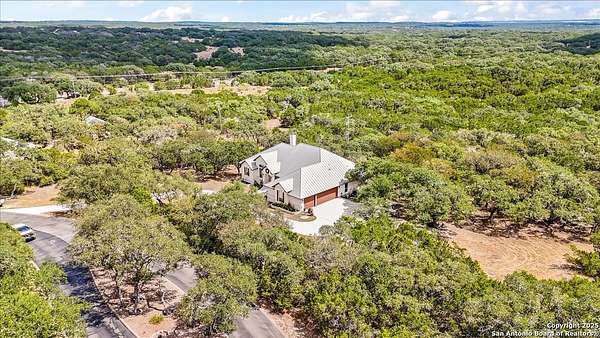 Nestled in the gated Seven Hills Ranch subdivision of Garden Ranch, 8018 Canham Ranch offers serene Hill Country living on over 1.5 acres with mature oak trees and sweeping views. This single-story home features an open floor plan with a limestone fireplace in the living room, a designated enclosed study with glass French doors and transom lighting, and a gourmet kitchen with a center island, breakfast bar, built-in oven and microwave, and smooth top range. The primary suite boasts recessed lighting, a tray ceiling, outdoor access, and a luxurious en suite with dual sinks, a vanity area, soaking garden tub, walk-in shower, and dual walk-in closets with built-in shelving. Secondary bedrooms each include spacious walk-in closets and share a well-appointed adjoining bath. Additional highlights include a large laundry room with utility sink and extra cabinetry, a 3-car garage, a covered patio with built-in grill space, and an extra storage shed-all offering privacy, convenience, and easy access to shopping, dining, major highways, and Randolph AFB. Seller is offering owner financing.