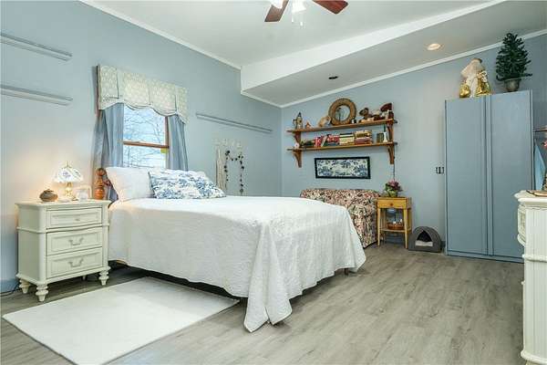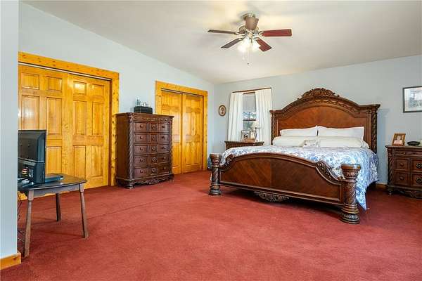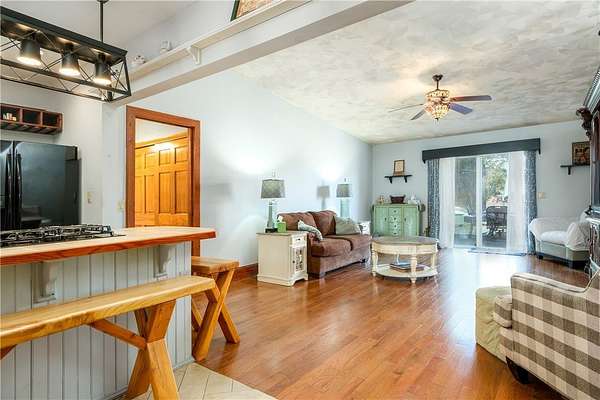 - Bedroom On Main Level, Ceiling Fans, Convertible Bedroom, Den, Entrance Foyer, Great Room, Kitchen Family Room Combo, Main Level Primary, Natural Woodwork, Separate Formal Living Room, Sliding Glass Doors, Solid Surface Counters