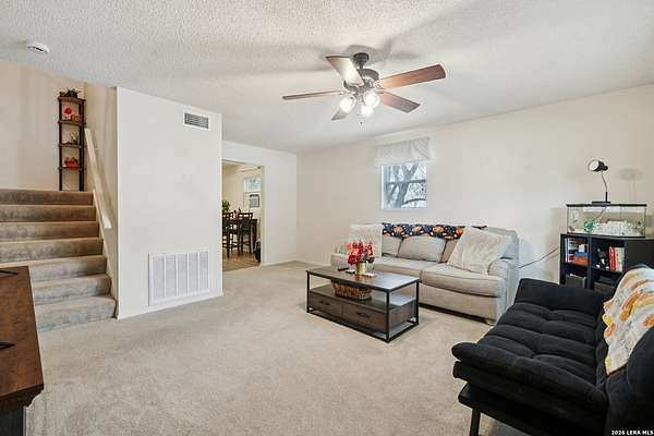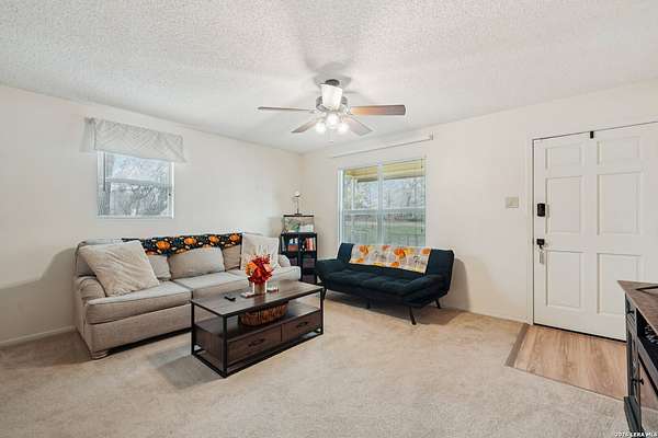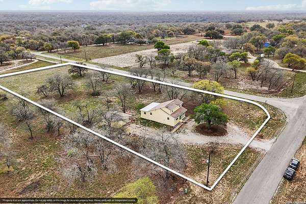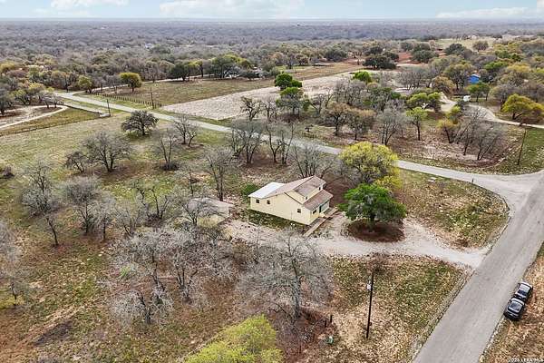 2.21-acre corner lot * Main-level primary bedroom * 2-car detached garage * Video tour and floor plan available. Two-story home in Eagle Creek Ranch with 3 bedrooms, 3 full baths, and approximately 1,704 sq ft. Built in 1993. Primary bedroom is on the main level with a walk-in closet and full bath; secondary bedrooms are upstairs. Separate dining room and utility room inside. Covered patio, circular drive, double-pane windows, composition roof, and a level lot. Central heat and central AC plus an additional window/wall unit. Annual HOA is approximately $60. Approximately 1.8 mi to Spot On Coffee, 1.5 mi to Maverick Grill and Saloon, and 1.6 mi to Lone Star BBQ. Nearby Amenity List Spot On Coffee - 1.8 mi; Maverick Grill and Saloon - 1.5 mi; Lone Star BBQ - 1.6 mi; T's Gourmet Burgers - 1.6 mi; 181 Nutrition - 1.9 mi.
