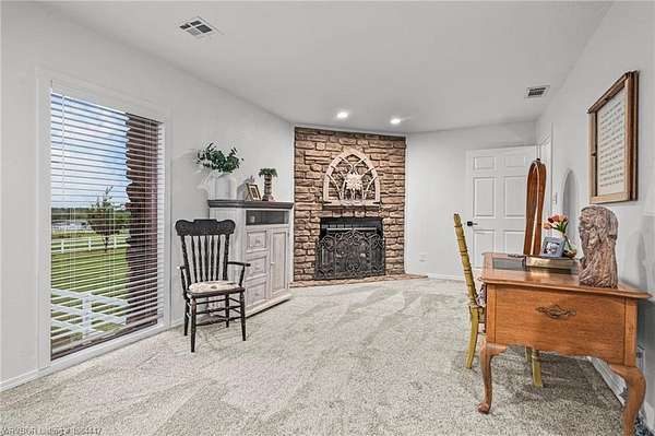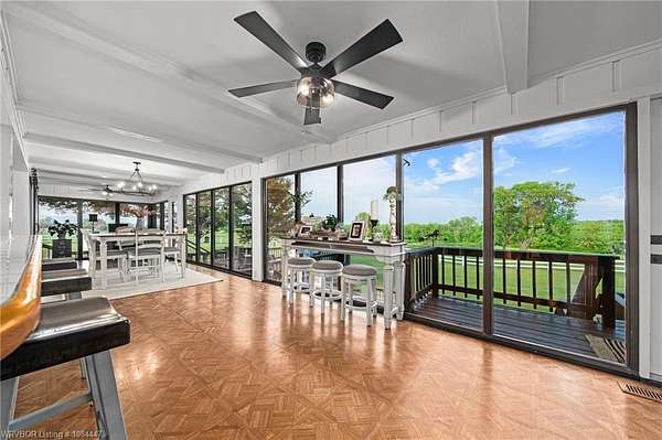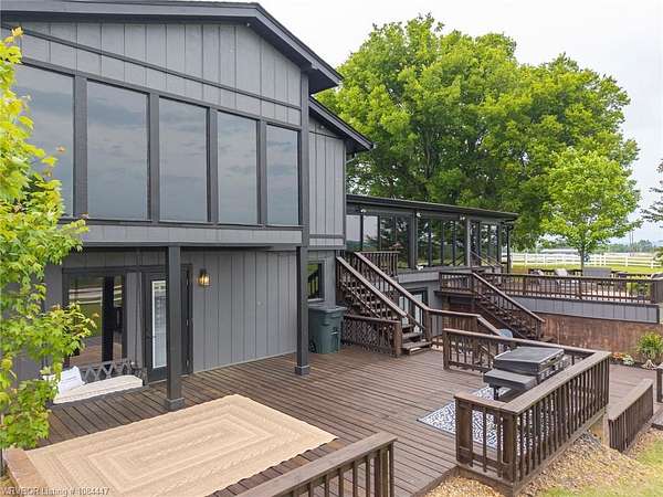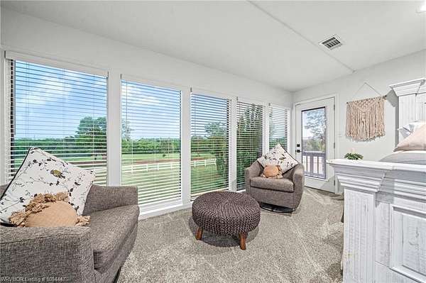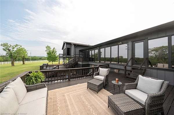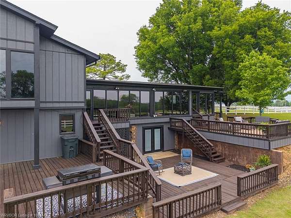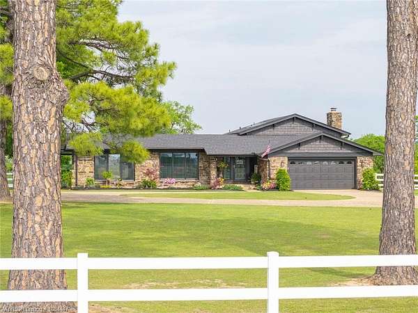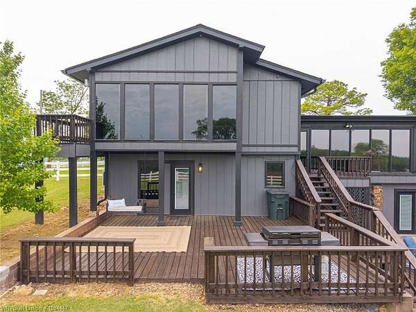 This exceptional residence offers breathtaking views of approximately 21.36 acres of picturesque pastureland, framed by charming white vinyl fencing. You can savor the scenery from three decks or a lovely balcony. The home is filled with unique character and charm, featuring large tinted glass windows that flood nearly every room with natural light and offer picturesque views. This all-electric home is equipped with both an electric log fireplace and a wood-burning fireplace. It includes two living areas, one of which features a bar/kitchenette. The spacious game room provides ample room for an additional bedroom, an office space, or a third living area. The property is connected to Public City water. Outdoors, a stocked pond with a solar-operated well enhances the experience. Recent updates include fresh paint inside and out, new exterior T1-11 panel siding, a roof replaced in 2023, updated gutters in 2024, new fans and light fixtures, updated doorknobs throughout, new carpet installed in 2022, and decks stained and sealed in April 2025. All new appliances, including a washer and dryer, are included with the home, and the air ducts were cleaned in April 2022. This home is Agent Owned.