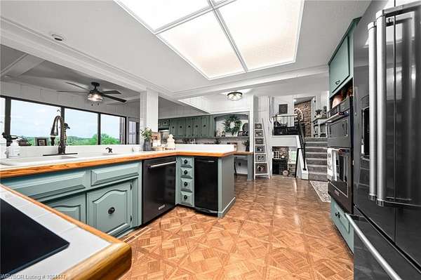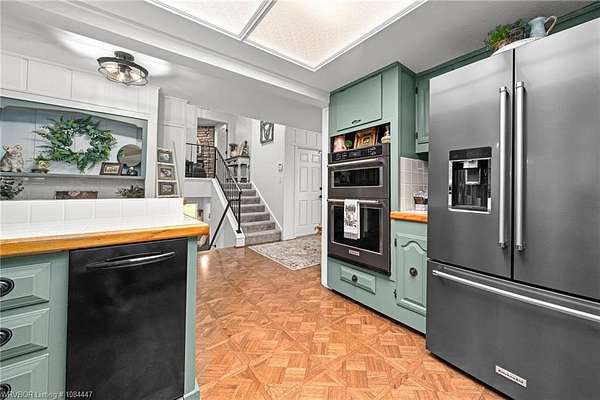 - Countertop, Dishwasher, Garbage Disposal, Glass, Microwave, Oven, Refrigerator