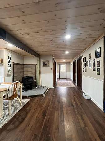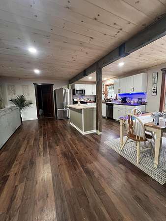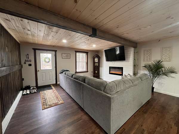 Newly built in 2023, this beautifully crafted ranch sits on over 4 private acres, offering the perfect blend of modern comfort and peaceful country living. With 3 bedrooms and 2 full baths, including a spacious first-floor primary suite and convenient first-floor laundry, this 1,600 sq ft home is designed for easy one-level living. The bright eat-in kitchen featured an island and flows seamlessly into the living area, while the full daylight, walk-out basement adds an additional 1,600 sq ft-complete with a built-in office and endless potential for expansion. Enjoy scenic wooded views, double-pane windows, insulated foundation, and energy-efficient systems including electric heat and a cozy pellet stove. A standout feature is the impressive 30x40 heated, detached two-car garage with overhead storage. Located new town, golf courses, and public beaches, this move-in-ready home offers space, privacy, and flexibility to make it truly your own.