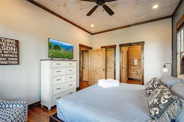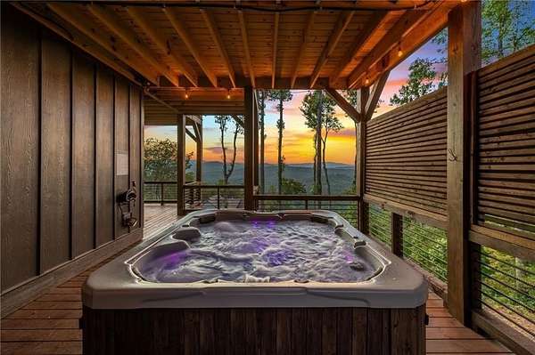 Premier Blue Ridge Heights location with breathtaking long-range mountain views, this luxury short-term rental presents an exceptional investment opportunity just minutes from downtown Blue Ridge. Nearly new and offered fully furnished, this turnkey property boasts proven, verifiable rental income and is ready to perform from day one. Thoughtfully designed with high-end finishes, the cabin features two spacious primary suites and seamless indoor-outdoor living. Expansive wraparound decking, along with upper and lower levels, creates the perfect setting to take in the views, while a private hot tub enhances the elevated guest experience. Ideally positioned just four minutes to downtown Blue Ridge and moments from the Toccoa River, hiking trails, shopping, and dining, this property offers the perfect balance of luxury, convenience, and mountain serenity. An outstanding opportunity for the discerning buyer seeking both lifestyle and investment performance.