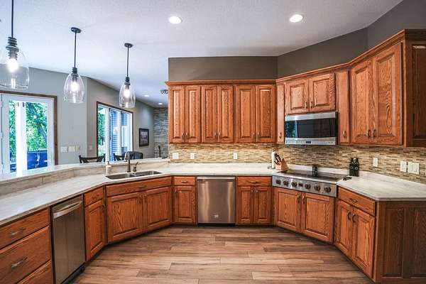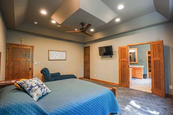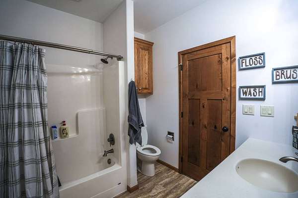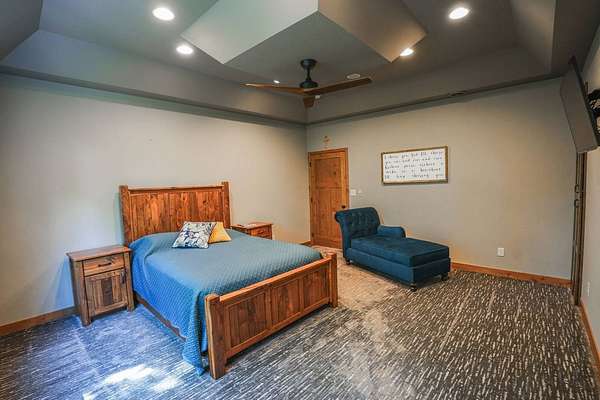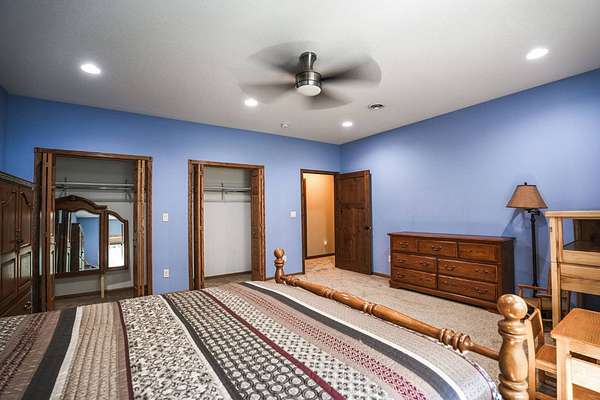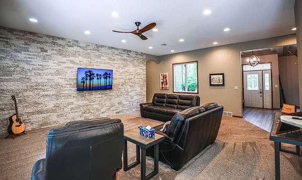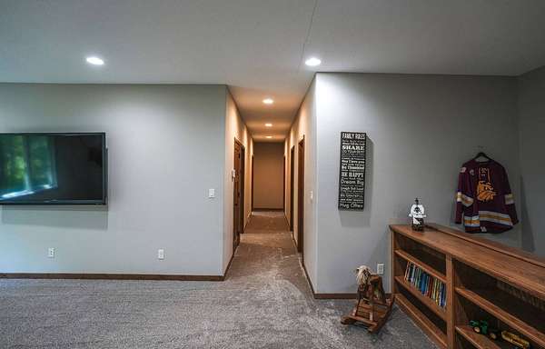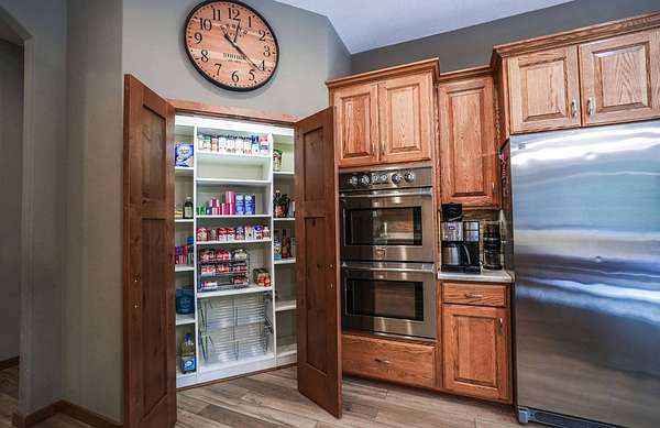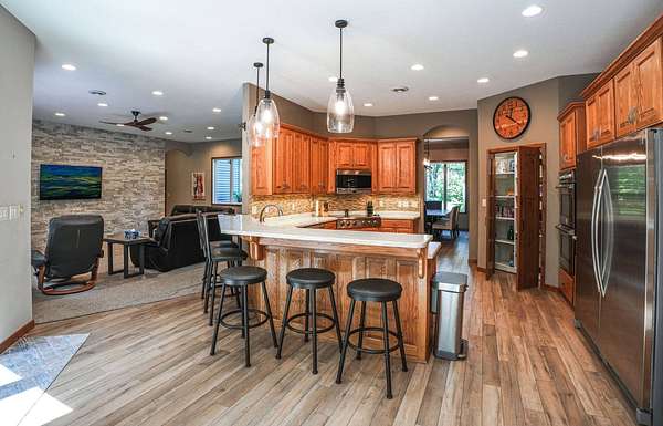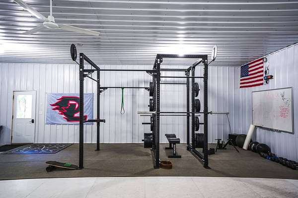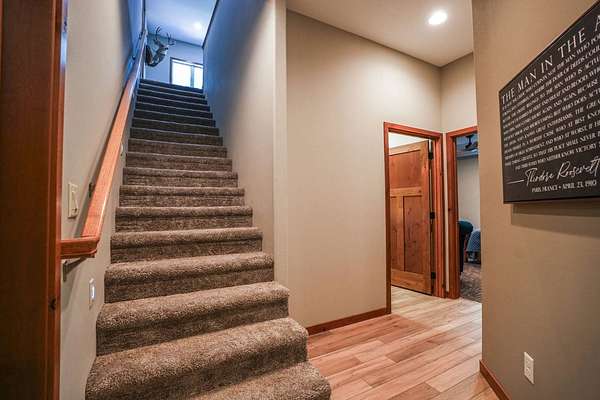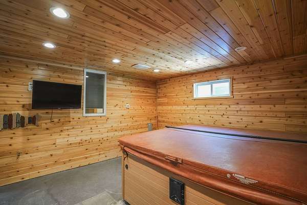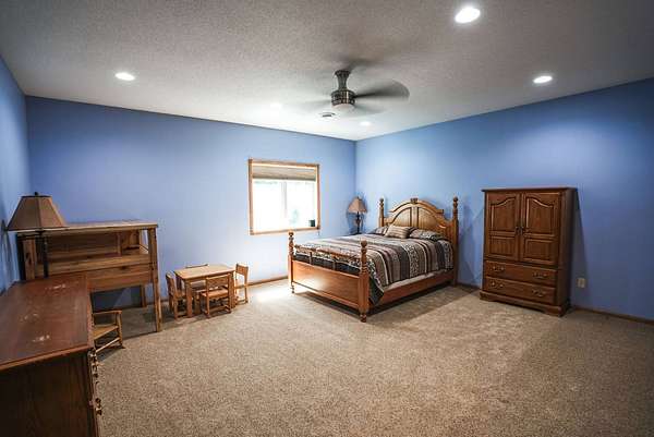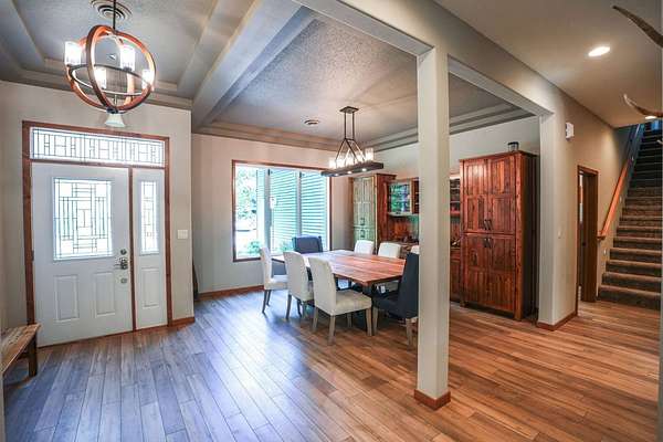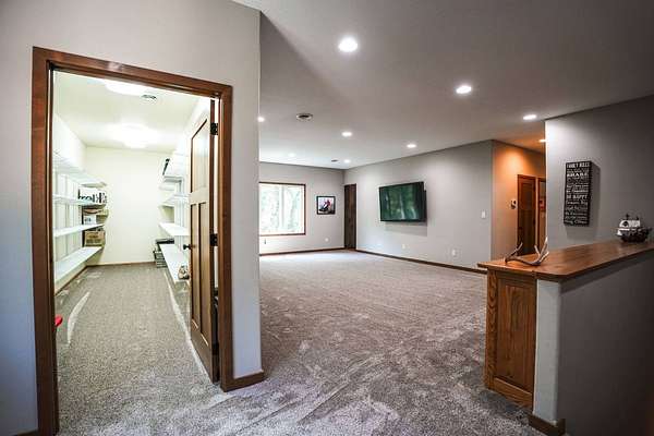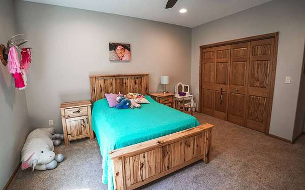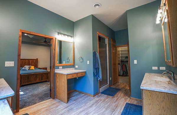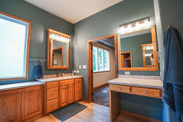 Custom Home in a Serene Natural Setting! Discover your dream home nestled in a picturesque treed acreage, offering a perfect blend of luxury and tranquility. This expansive 6,396 sq. ft. slab-on-grade residence features dual heating systems, including floor heat and forced air/central air, ensuring comfort year-round. The home boasts 5 spacious bedrooms and 4.5 baths, with impressive 10' ceilings on the main floor and 9' ceilings upstairs. The gourmet kitchen is a chef's delight, complemented by a formal dining area and a luxurious master en-suite. Enjoy relaxation in the hot tub and sauna room addition, or work from home in the elegantly appointed office with cherry cabinets. Convenience is key with a main floor laundry and a guest bedroom complete with an en-suite bath. Upstairs, you'll find a large recreation room, three additional bedrooms-one featuring a Jack and Jill bath and another with its own private bath. Entertainment is taken to the next level in the media room, where the equipment with surround sound, projector, screen, and new theater seating are not included at the price but are negotiable. The attached 3-car garage is fully finished, featuring floor heat and floor drains for added practicality. Step outside to enjoy the stamped patio, complete with a grill plumbed to natural gas and a cozy firepit, perfect for gatherings. For hobbyists and enthusiasts, the 28'x32' detached garage, known as the "Man Cave," is finished and heated with a floor drain, while the 32'x64' shop offers a wood frame, metal exterior, 12' side walls, and a heated, finished interior with epoxy flooring. Additional storage options include a 16'x32' military shed with a dirt floor and a 12'x16' yard shed with a loft. The property features a blacktop driveway and beautifully landscaped surroundings, all set within a serene wooded setting. This custom home is a true sanctuary, combining modern amenities with the beauty of nature.