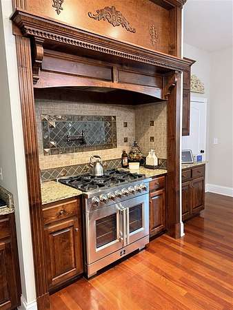- Covered Front Porch, Exterior Lights, Fence, Landscaping, Mature Trees, Outdoor Lighting, Partial