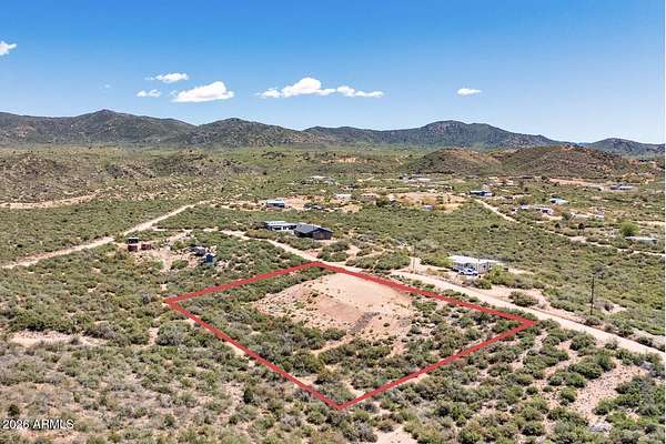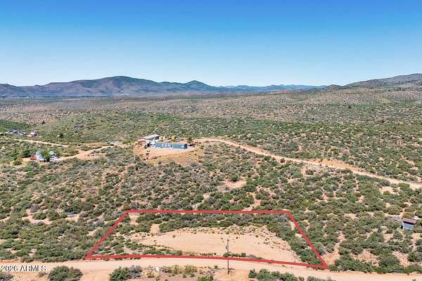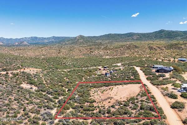 Est $483/moThis 2+ acre lot offers the perfect setting for quiet country living, where you'll enjoy panoramic mountain views with no HOA restrictions. Improvements include septic, water meter, and a graded homesite. Electric at lot. Just one lot from the National Forest and Weaver Mountains and community is surrounded by State Trust Land and National Forest, ideal for horseback riding or hiking. Zoned for manufactured or site-built homes, horses and RVs welcome. Conveniently located about 25 minutes from Prescott's shopping, dining, schools, and medical services. County-maintained dirt road access.