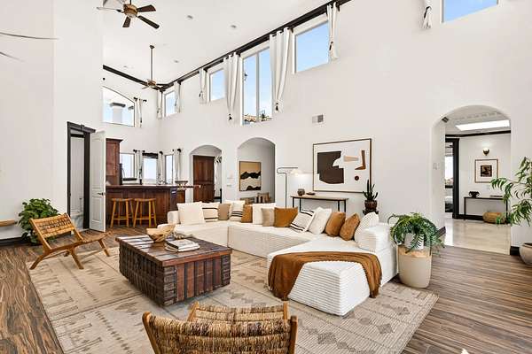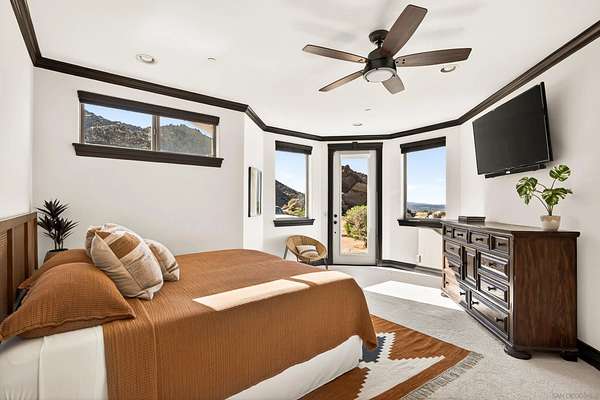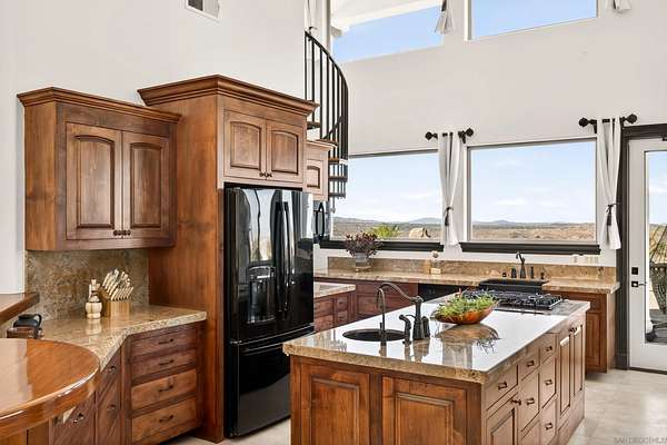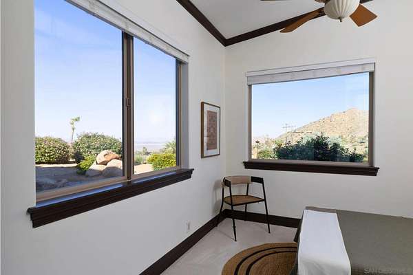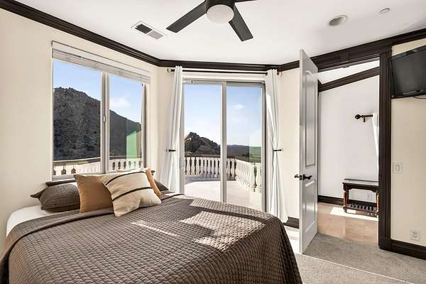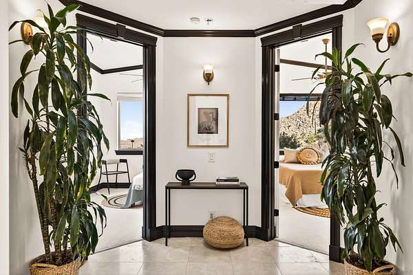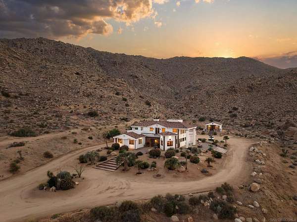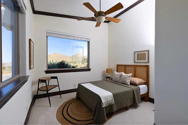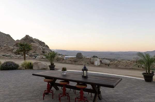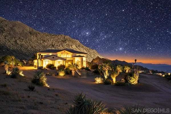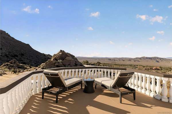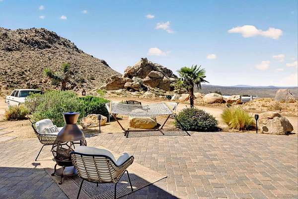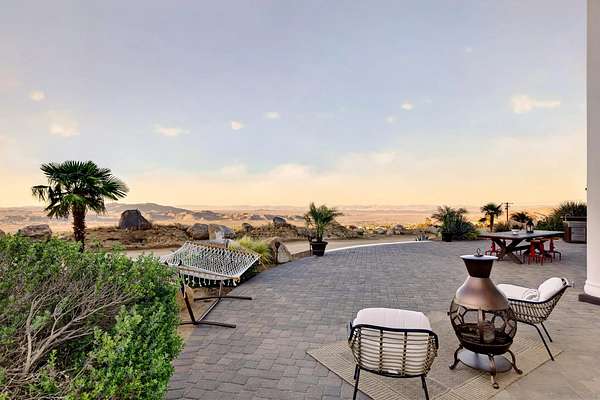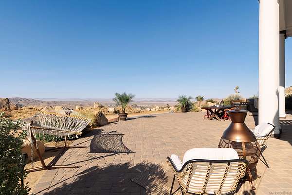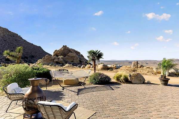 Rare Joshua Tree estate with exceptional income potential on a private 2.84-acre double lot with breathtaking views, BLM land behind the property, and private trail access directly into Joshua Tree National Park. The detached guest home has generated approximately $45,000 annually, while the main home offers estimated income potential of $200,000+ annually, creating a compelling opportunity for investors, second-home buyers, or those seeking a Luxury Desert Sanctuary. The main residence features four bedrooms and four bathrooms, with nearly all bedrooms on the main level for easy living. Upstairs, a separate retreat with view balcony offers flexible space for an office, guest area, or studio. Enter through a custom oversized wooden front door to abundant natural light, dramatic 24-foot ceilings, and distinctive architectural details that make the home feel expansive and unforgettable. The separate ADU adds even more versatility for guests, extended family, private use, or additional rental income. Outside, the property is designed for both relaxation and recreation with a beach volleyball court, in-ground trampoline, and incredible outdoor spaces to take in the surrounding desert landscape. Solar panels added in 2025. Whether you are looking for a luxury vacation rental, private retreat, second home, or investment opportunity, this exceptional property offers rare privacy, flexibility, and upside, including potential for future improvements such as an additional home, a pool, horse corral, or event venue, subject to buyer verification. A truly unforgettable offering!