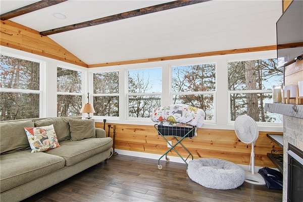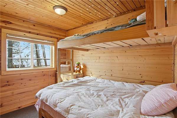 Beautifully remodeled 4 season 3 BR, 1 BA lake cottage offering the perfect Northwoods retreat with most furnishings included! Private 2.7 acre setting (2.19 acre back lot for potential future expansion) with desirable southern exposure and peaceful wooded surroundings. Extensive updates from 2010 to present including LP SmartSide siding, architectural shingles, covered entry porch, ledgestone chimney, lakeside deck and 1 stall garage. Warm and inviting interior features engineered maple floors, pine interior walls, vaulted ceilings and skylights that bring in abundant natural light. Dedicated hearth area with wood storage nook and existing chimney provides the opportunity to easily add a freestanding wood stove if desired, along with a stunning wall of lakeside windows with gridded transoms above. Custom staircase leads to sleeping loft, along with two main floor bedrooms featuring built-in beds and bunks. Main floor laundry and thoughtful built-in storage throughout. Separate cedar shake lakeside guest house with rustic interior plus a cozy sun porch with LP gas fireplace perfect for relaxing evenings. Enjoy 102' of rip-rap and sand shoreline, a beautiful plateau at the water's edge, horseshoe dock and lakeside shed with power. Tram system provides convenient access between the cabin and shoreline. Direct access to UTV trails right out the back door and two bar/restaurants on the lake just a short boat ride away. Endless boating, fishing and swimming on sought-after Yellow Lake!
