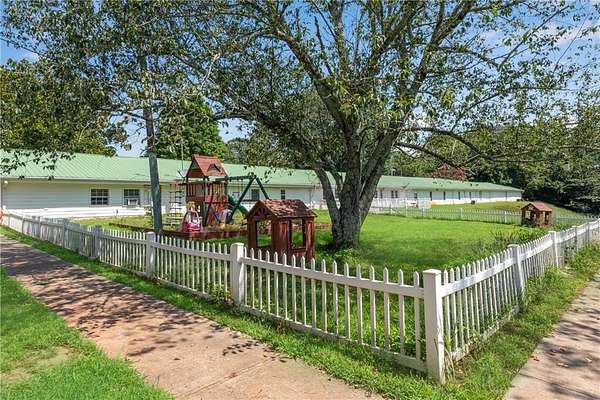 Exceptional opportunity to own 3.5 fully fenced acres in a prime location, currently utilized as a 501(c)(3) nonprofit. This unique property includes multiple buildings and is ideally suited for another nonprofit organization, church camp, or retreat center. Ample parking is located at the front of the property. The well-manicured grounds feature several specialty shops including a boutique (with monitored alarm), children's shop, and thrift store, along with a large, multi-functional ministry building. The ministry and retail shops have motion detection lights. Inside the ministry building you'll find individual rooms, communal bathrooms, laundry facilities, a full kitchen, spacious living area, chapel with office, and a designated area with teaching cubicles. A private apartment offers a living space with a bedroom, bathroom, and living area. Additional amenities include multiple food storage rooms, two commercial freezers, and multiple outbuildings including a workshop and greenhouse. A beautiful permanent residence sits at the heart of the property, boasting a wraparound porch, 3 bedrooms, 2 full baths, a large kitchen, and a sunroom with a hot tub. Just behind the home is a large inground pool. A well-maintained 3-bedroom, 2-bath mobile home is also located on the property, perfect for staff housing or guest accommodations. The rear acreage offers level green space and a playground, making it ideal for gatherings and recreation, or future expansion. This one-of-a-kind property offers endless potential for those seeking a mission-based or community-oriented setting. Don't wait--come see this beautiful property today!