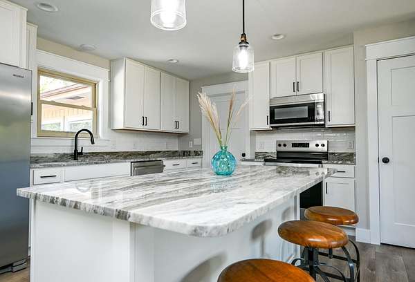 - Bathroom Mirror(s), Ceiling Fan(s), Crown Molding, Double Vanity, Eat-In Kitchen, Granite Counters, High Speed Internet, Kitchen Island, Open Floorplan, Pantry, Primary Downstairs, Split Bedrooms, Walk-In Closet(s), Walk-In Shower